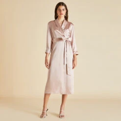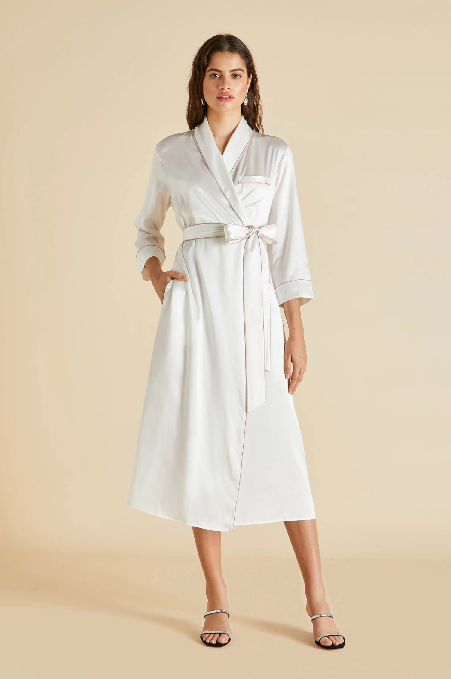 Wrap yourself in elegance with the Astrid ivory oyster silk satin robe. Luxuriously soft and flowing, it offers unmatched comfort while adding a touch of sophistication to your loungewear. Perfect for mornings, evenings, or relaxing at home in style.