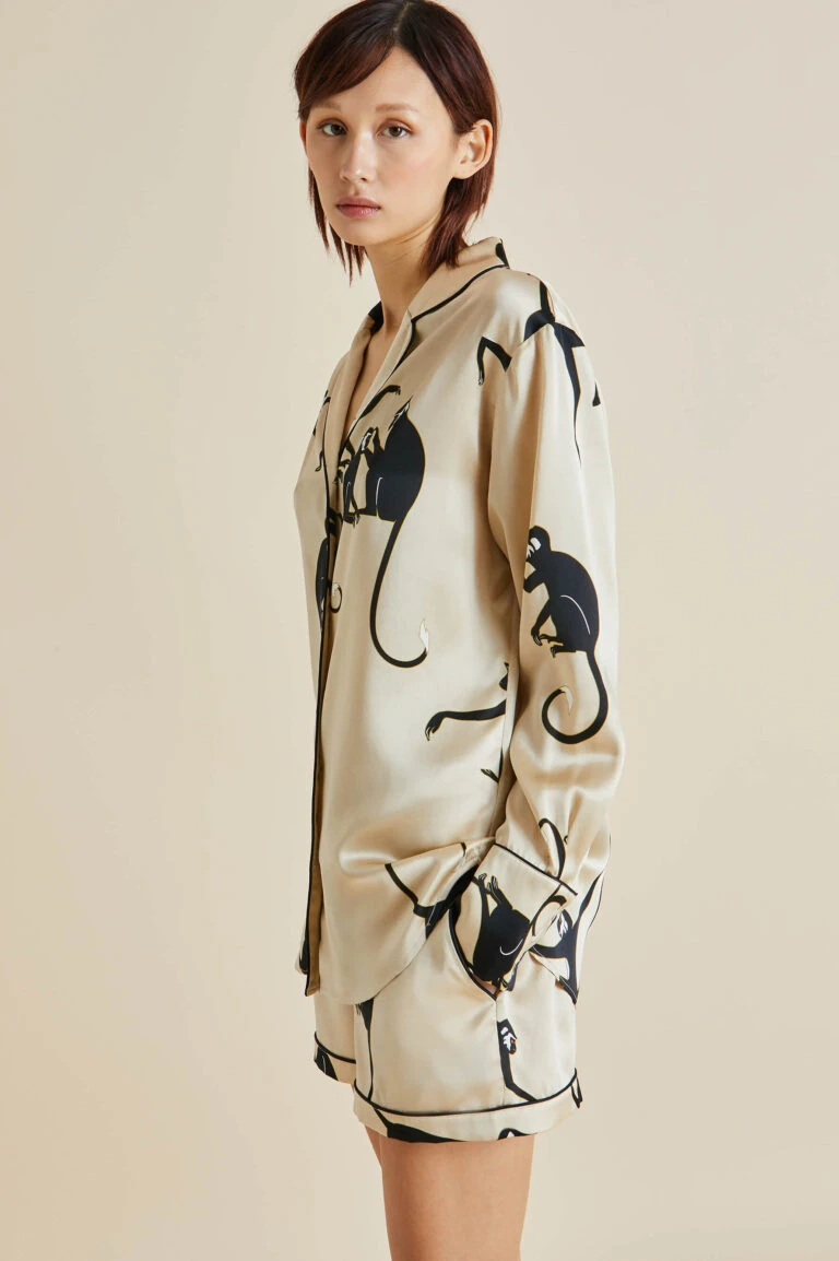 Alba Macaque Cream Monkey Silk Satin Pajamas