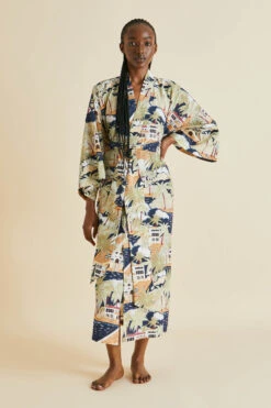 This season Olivia von Halle combines a surrealist artistic sensibility with the seductive promise of all-out leisure, transporting wearers to the bohemian glamour of the 1920s and 30s French Riviera. Fling on this striking architectural print and sip your coffee on the balcony (sea view, of course), perfectly relaxed in our airy cotton-silk blend.