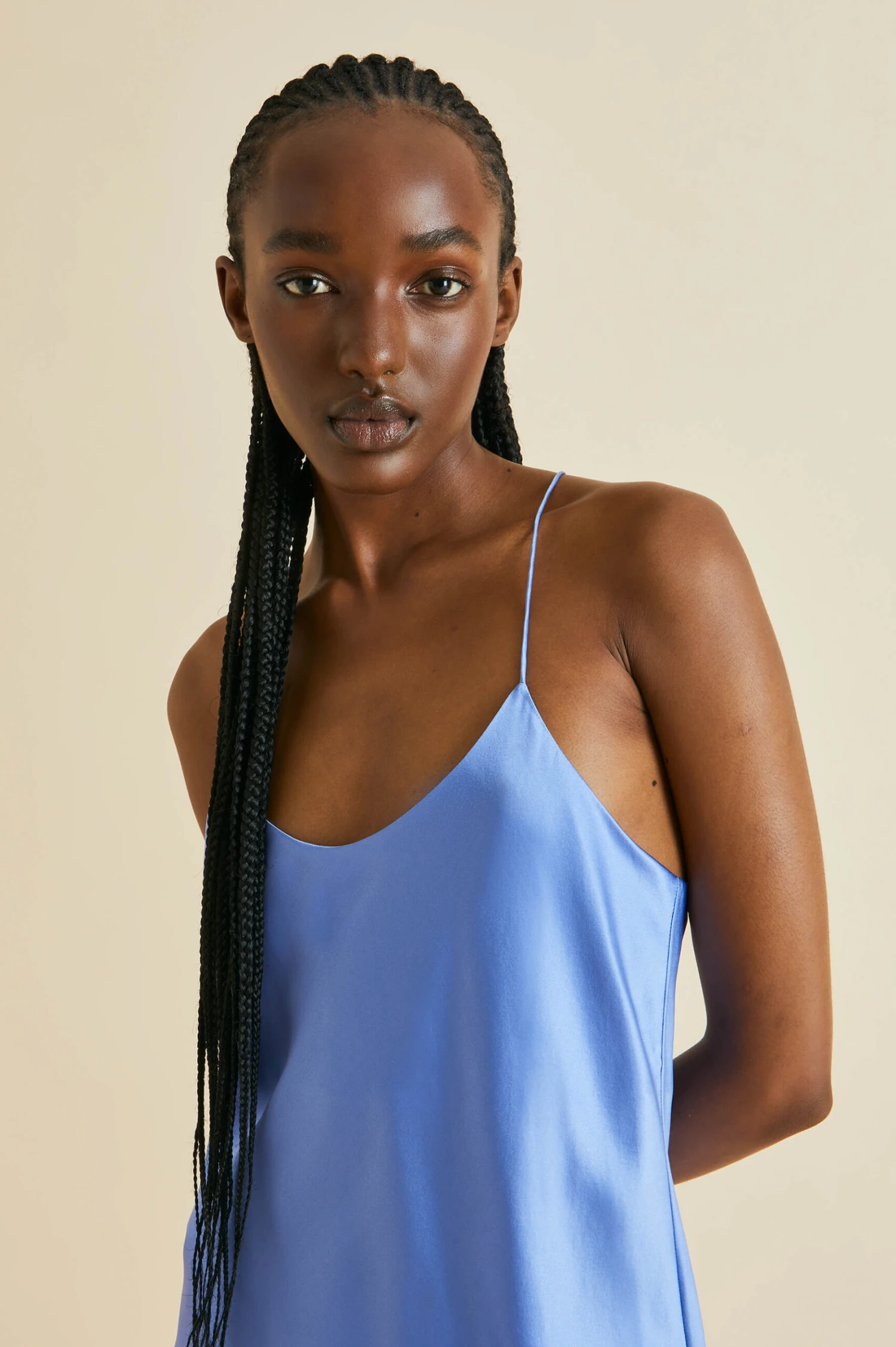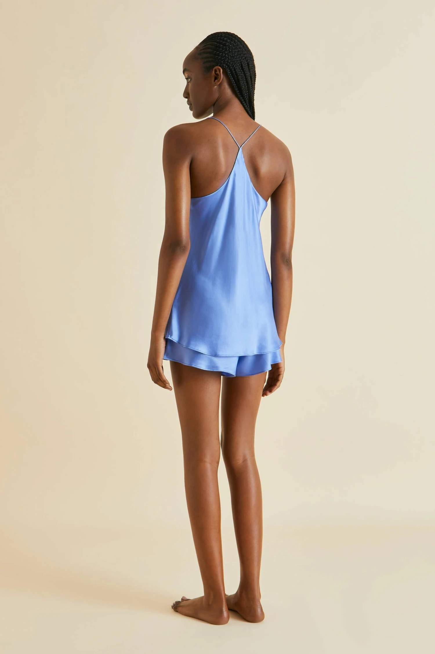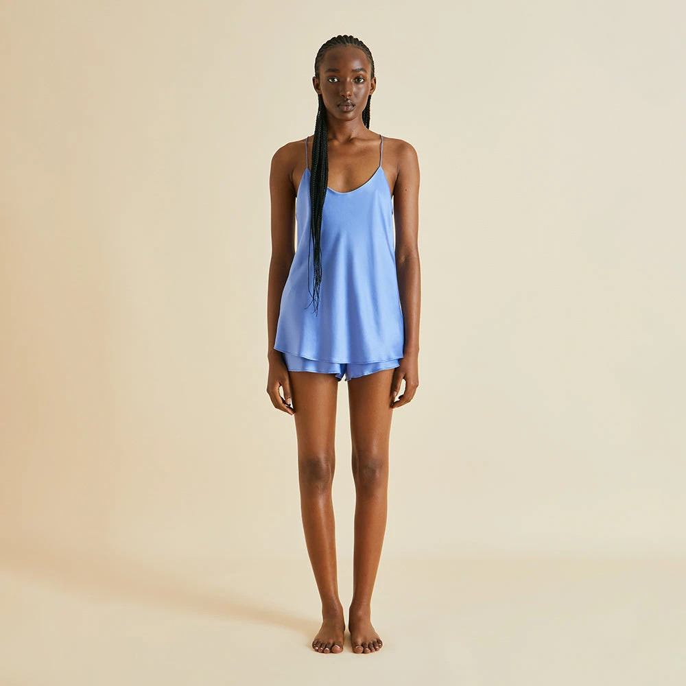 From her slinky bias cut to her racer back straps, this sky-blue camisole and French knicker set is a stunning – and intelligently crafted – wardrobe staple, spun from the lightest 19-momme silk.