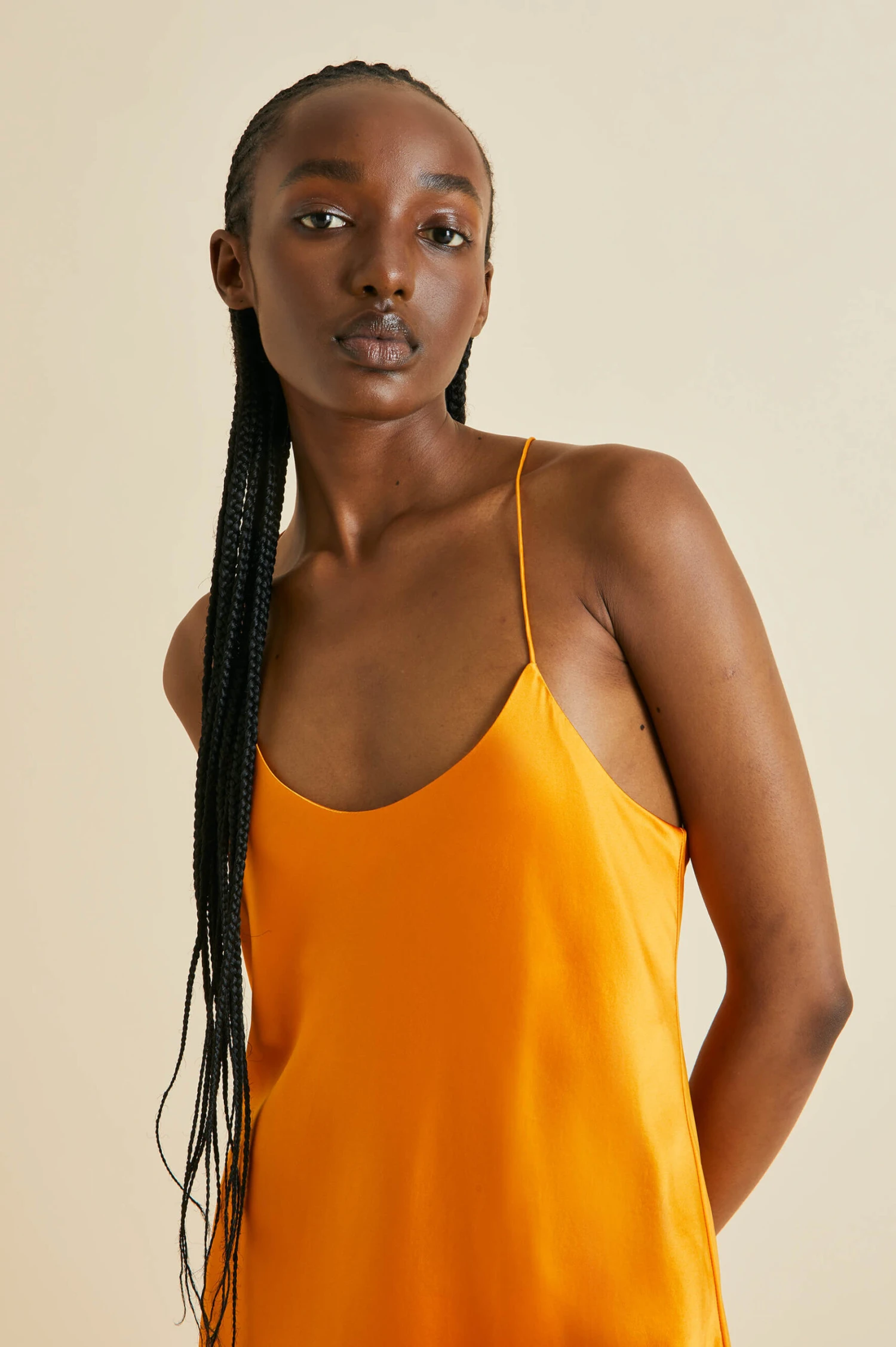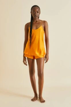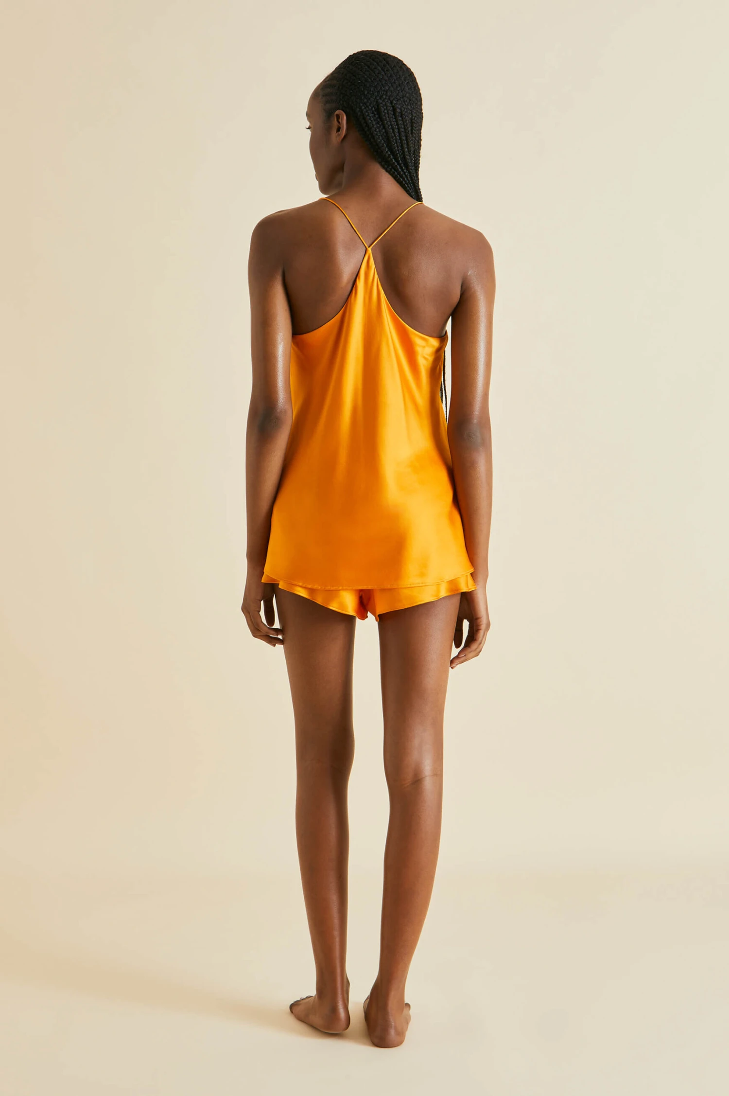 Dream of sunshine and salt-laced air in our optimistic tangerine Bella camisole and French knicker set. Embody a little joie de vivre in our signature 19-momme silk – soft, breathable, capturing the jet set glamour of the French Riviera.