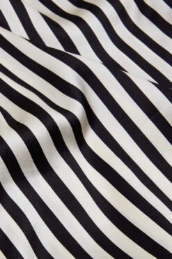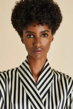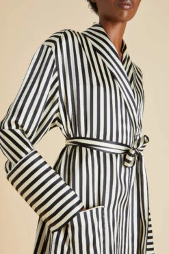 - Luxury Jet Black and Ivory stripe printed silk full-length robe