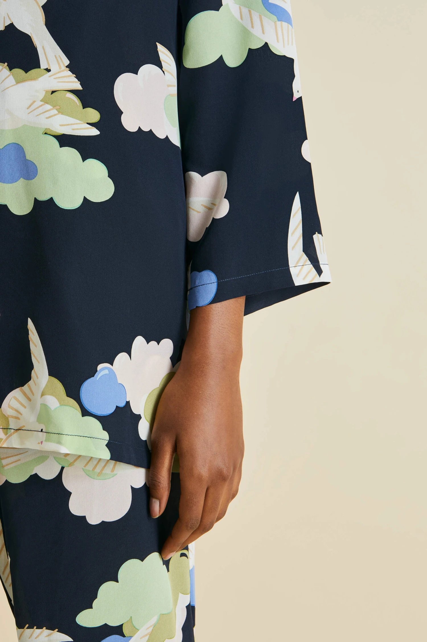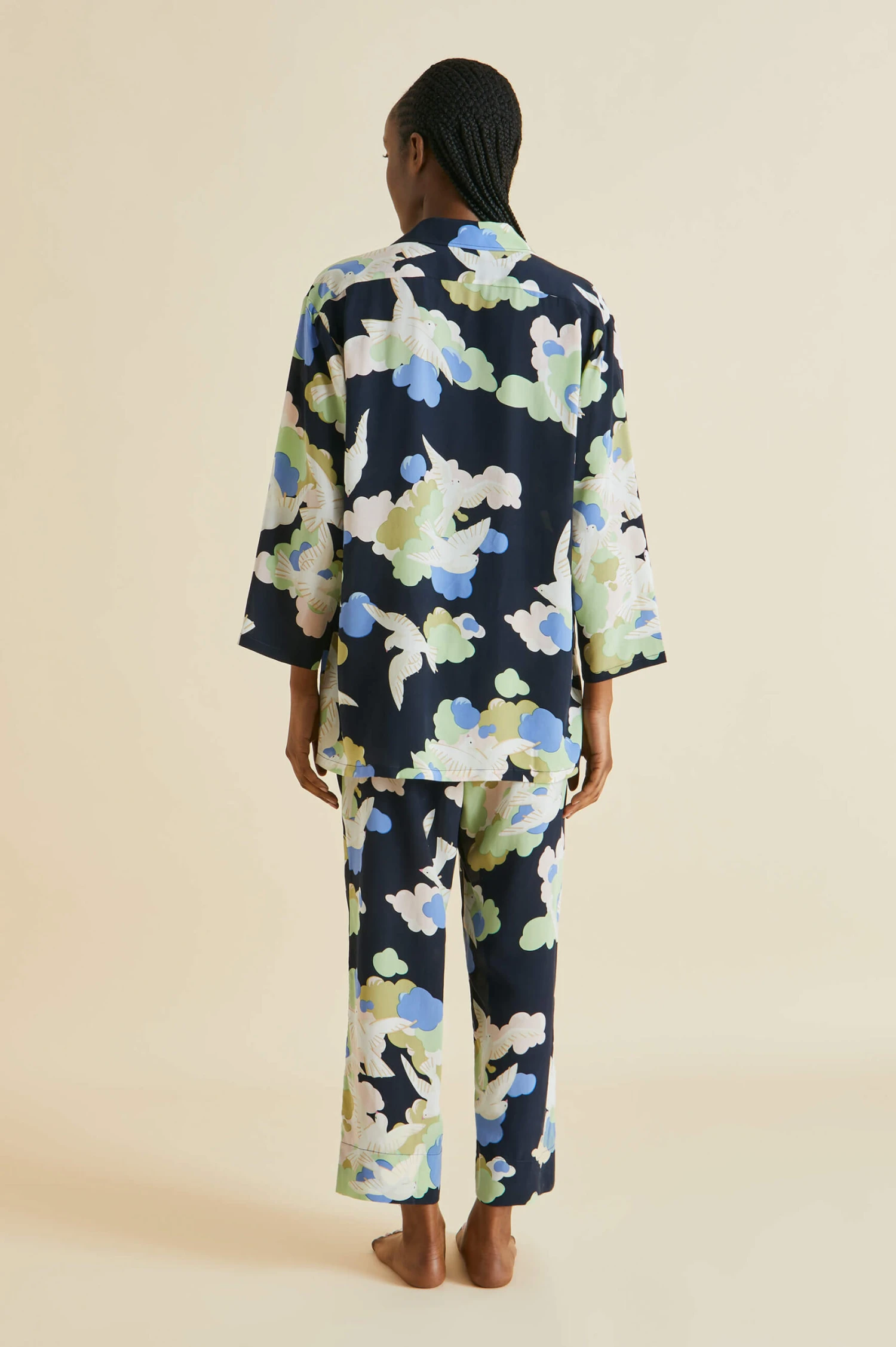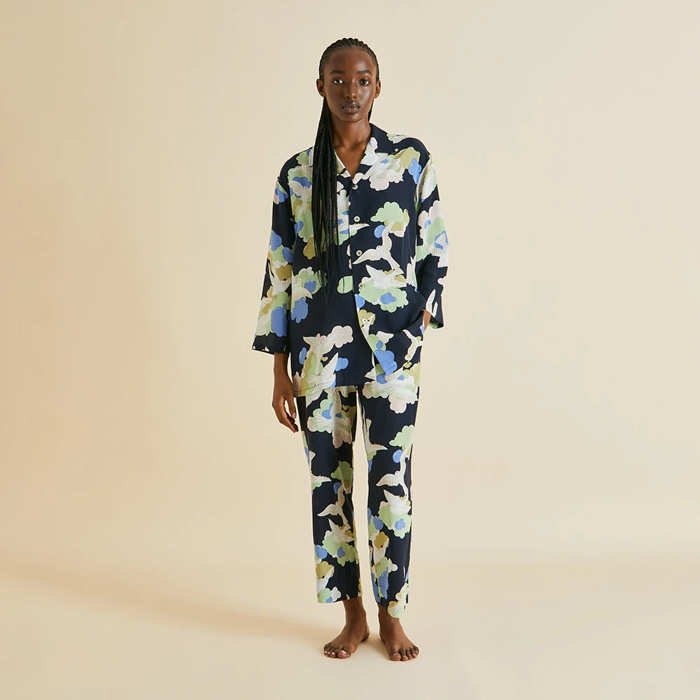 Inspired by a bohemian generation of creatives who sought the dazzle of sun and sea in a bid for a more free-spirited way of life, this season conjures the glamour of the 1930s French Riviera. The Casablanca pajamas classic silhouette is designed with a relaxed fit: suitable for all genders, its fluttering dove print adding a touch of irreverence.