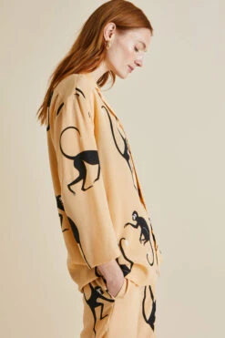 Take a trip on the Eastern & Orient Express this season with the Spring Summer collection’s tropical offerings. Our tried-and-true Casablanca pajama offers a refined sort of monkey business in our whimsical screen-print. Offering a relaxed fit suitable for all genders and crafted in sumptuously smooth crêpe de Chine, this adventurous set is ideal for all would-be voyagers.