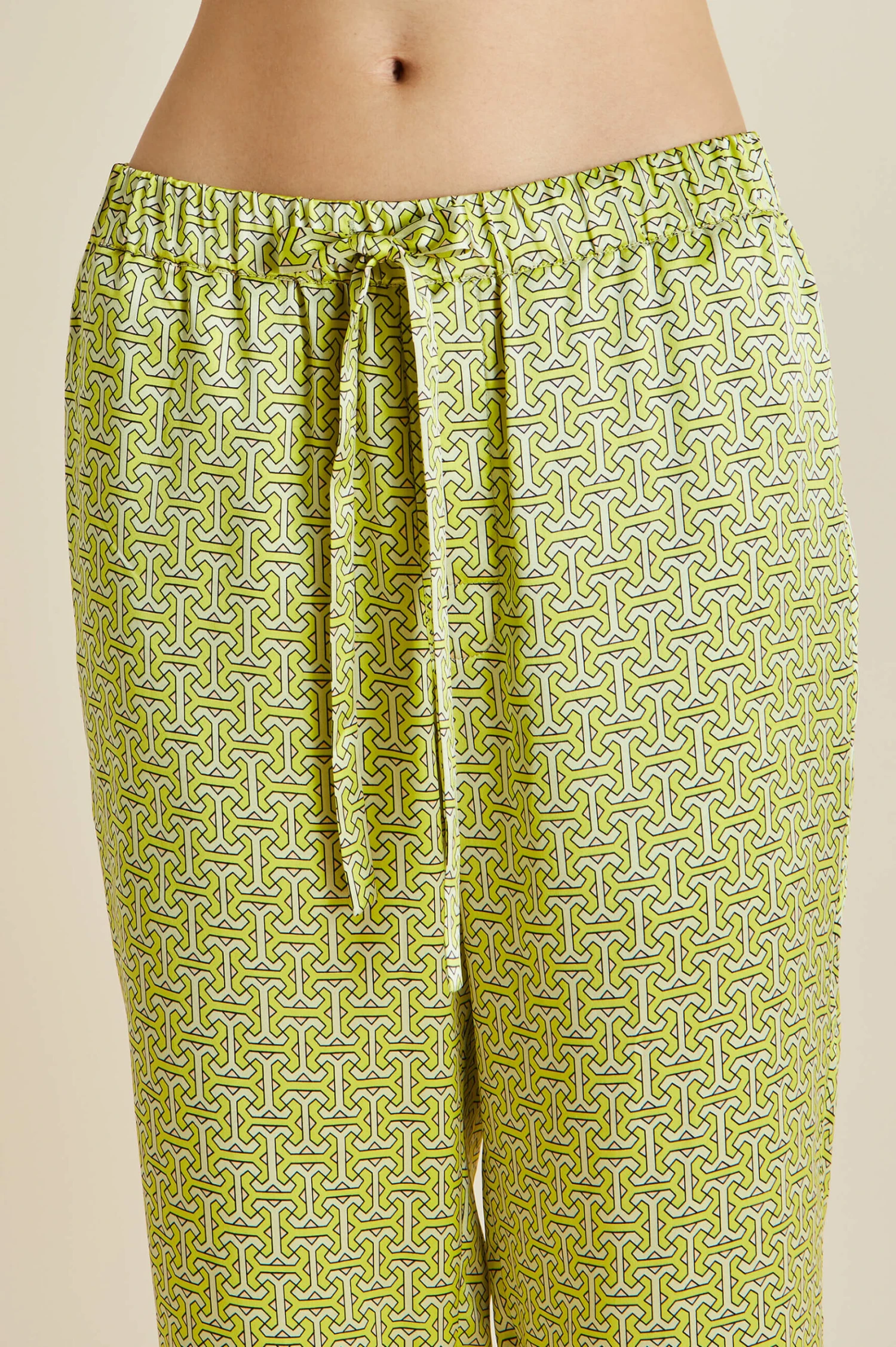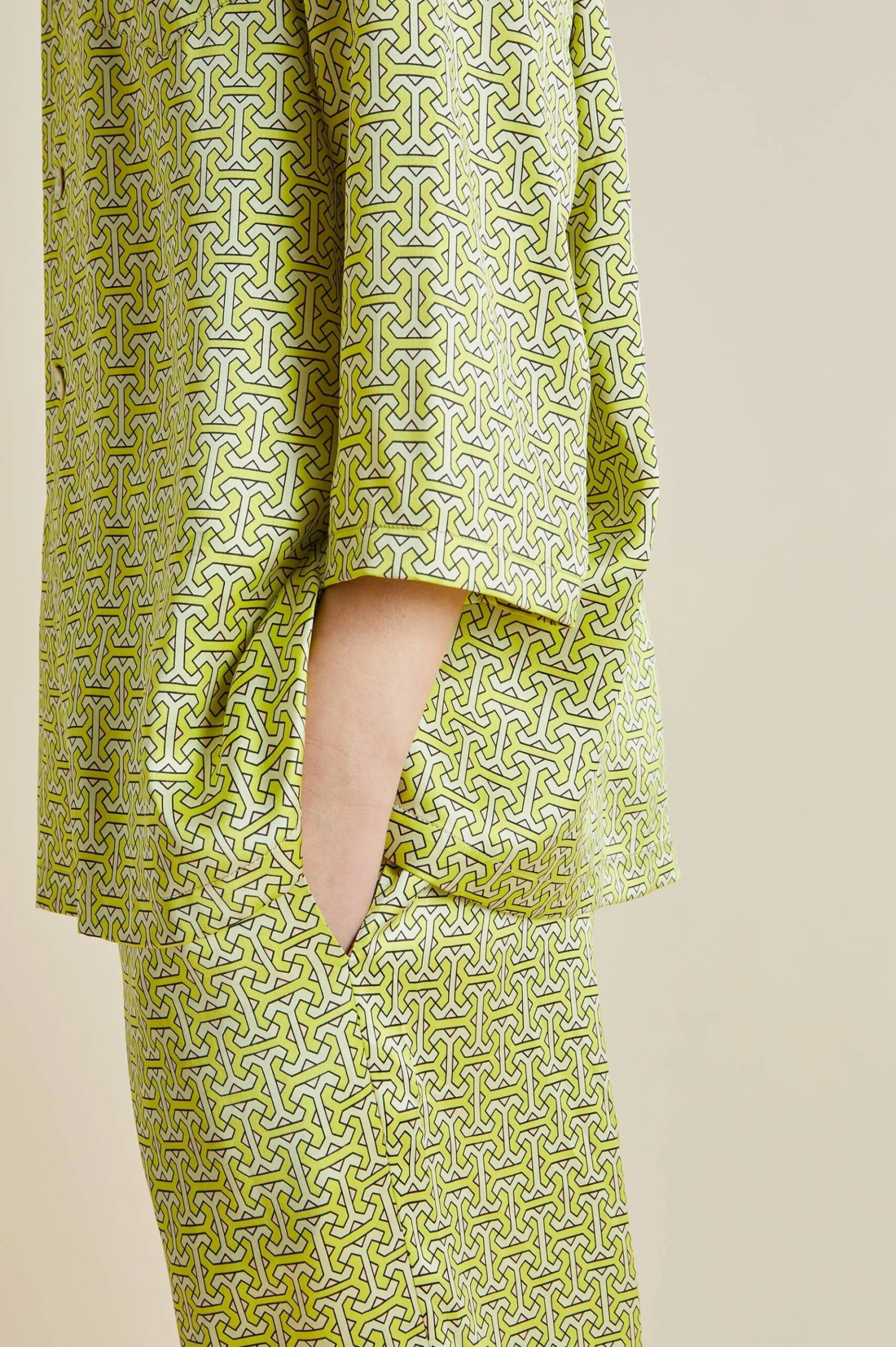 - Green geometric printed silk