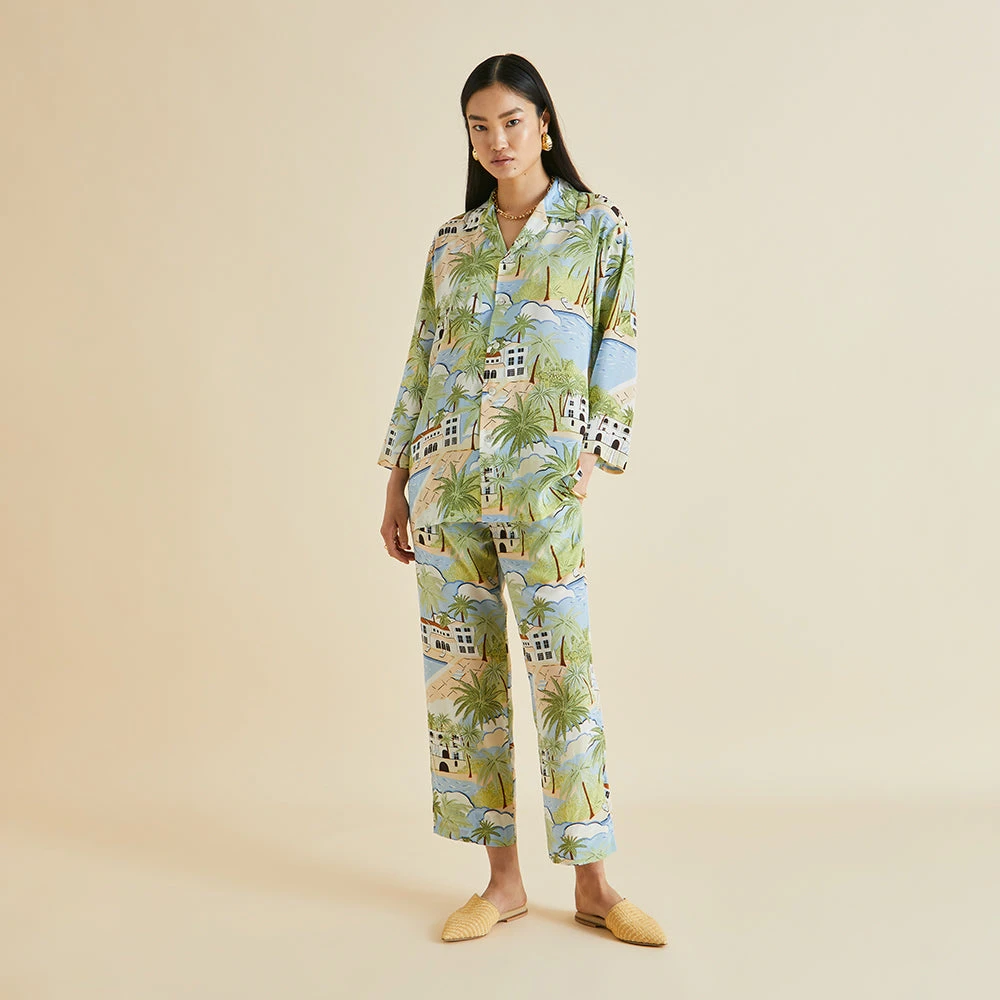 This season, our classic Casablanca pajama takes the spotlight. Nodding to the leisurely glamour and artistic atmosphere of Côte d’Azur in the 1920s and 30s, this architectural print features the bolthole homes of Coco Chanel and socialite extraordinaire Elsa Maxwell.