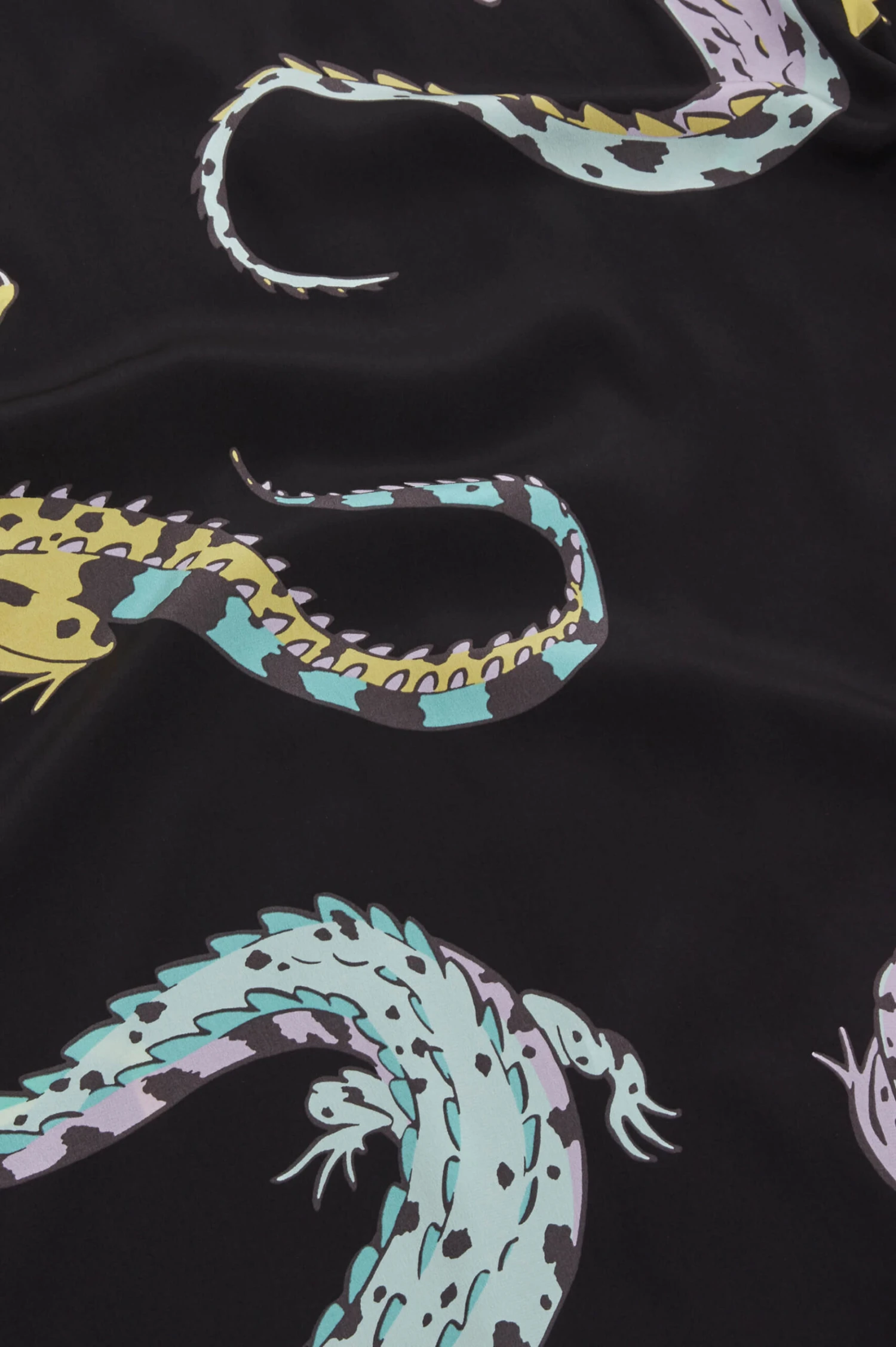 - Jet black crocodile screen print on crêpe de Chine silk