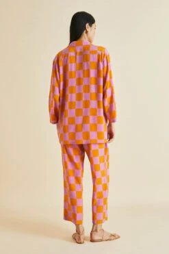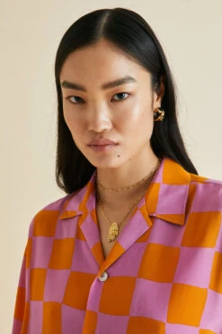 This season, our classic Casablanca pajama takes the spotlight. Nodding to the leisurely glamour and artistic atmosphere of Côte d’Azur in the 1920s and 30s, the collection employs bold hues and patterns. Turn heads in our foxglove and tangerine gingham silk: combining a relaxed, genderless fit with zesty colors, you’ll bring the sunshine wherever you go.