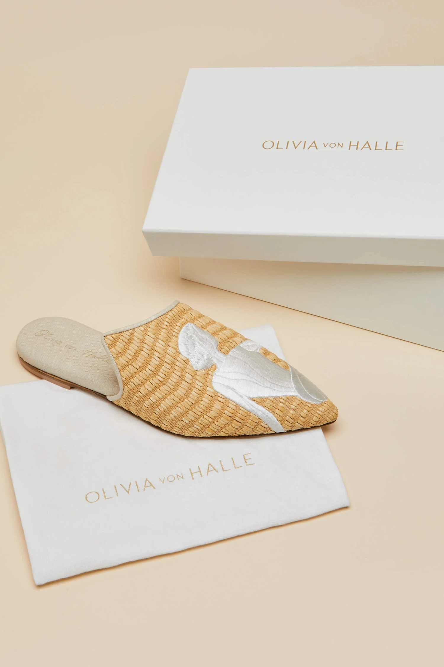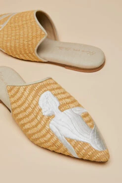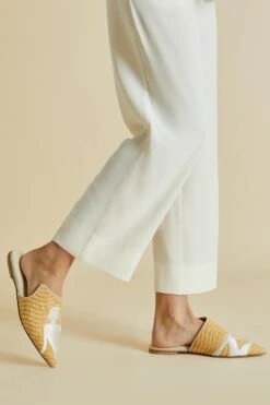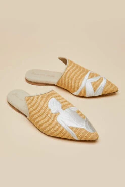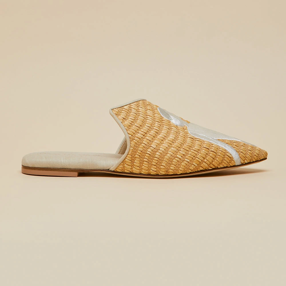 - Luxury Natural Raffia Slipper with Ivory Sunbather embroidery detail