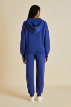 The sporty-chic Della is the newest inductee to our silk-cashmere roster and holds the illustrious title of Olivia von Halle’s first zip-up tracksuit. A pragmatic younger sister to our now-iconic Gia, she’s fashioned from nothing but the finest blend of silk and cashmere – and looks especially arresting in our Klein blue Tulum.