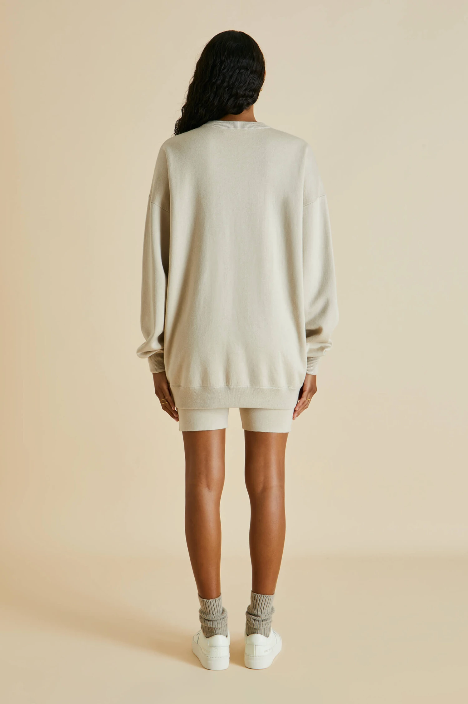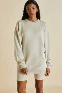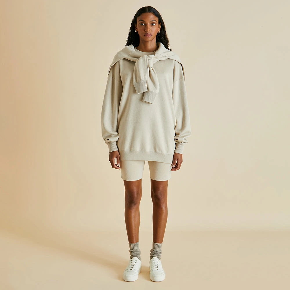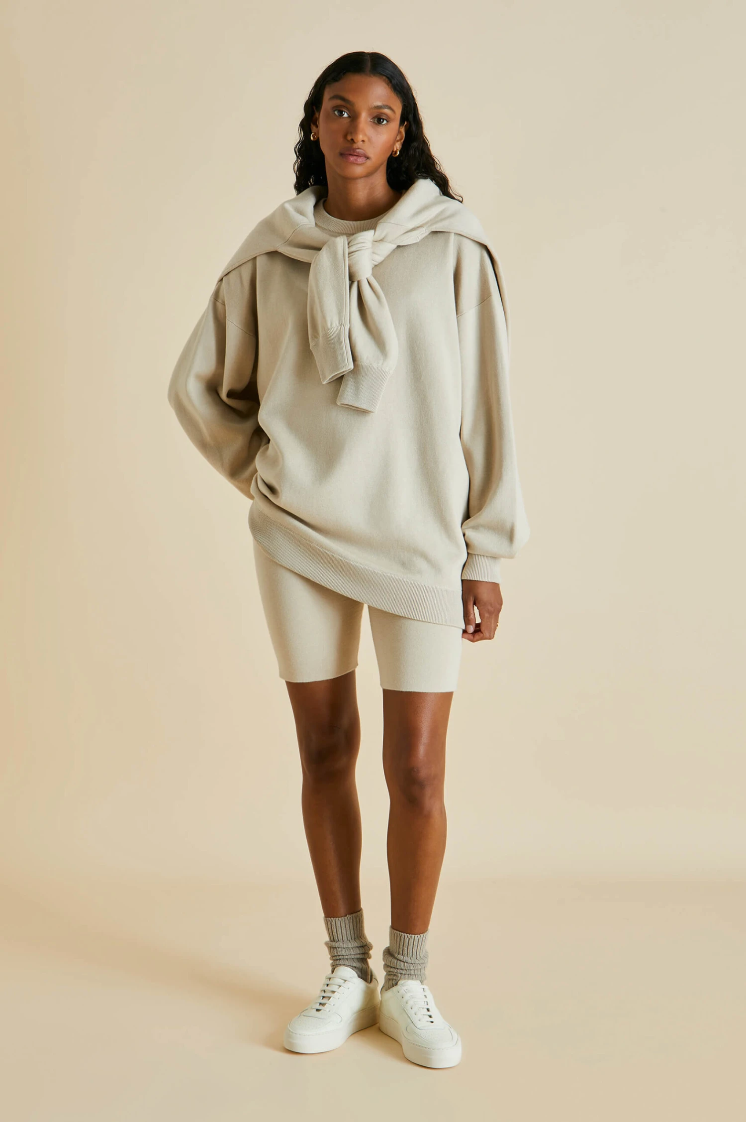 The athletic-yet-elegant Didi is the buzzed-about new girl in town – the latest addition to our first-class clique of silk-cashmere creations that are beloved by the glamorous and on-the-go. With her cosy crew-neck jumper and above-the-knee cycling shorts, she’s one for dashing out to appointments and trundling through a lengthy to-do list (albeit in the chicest manner imaginable).