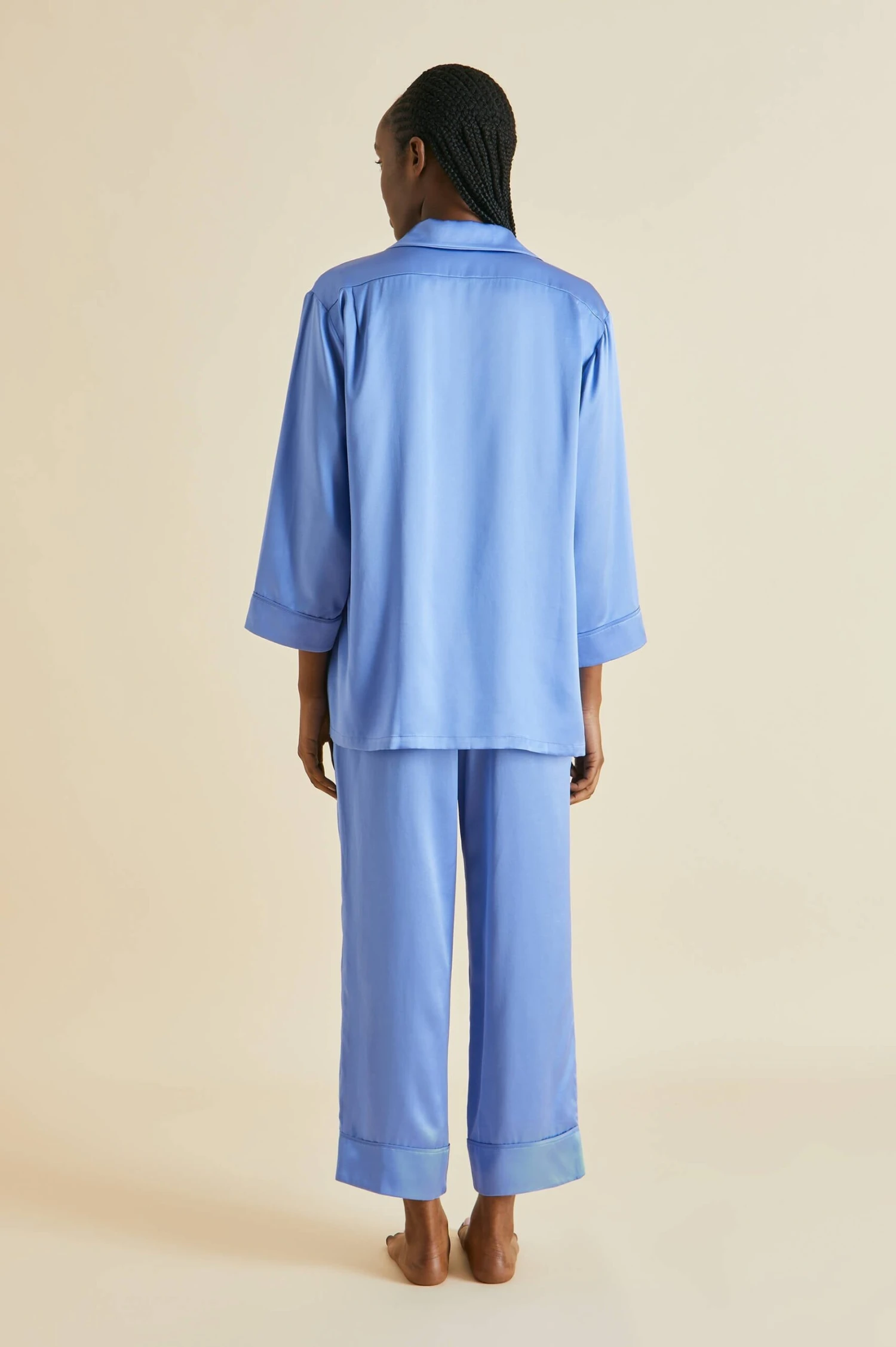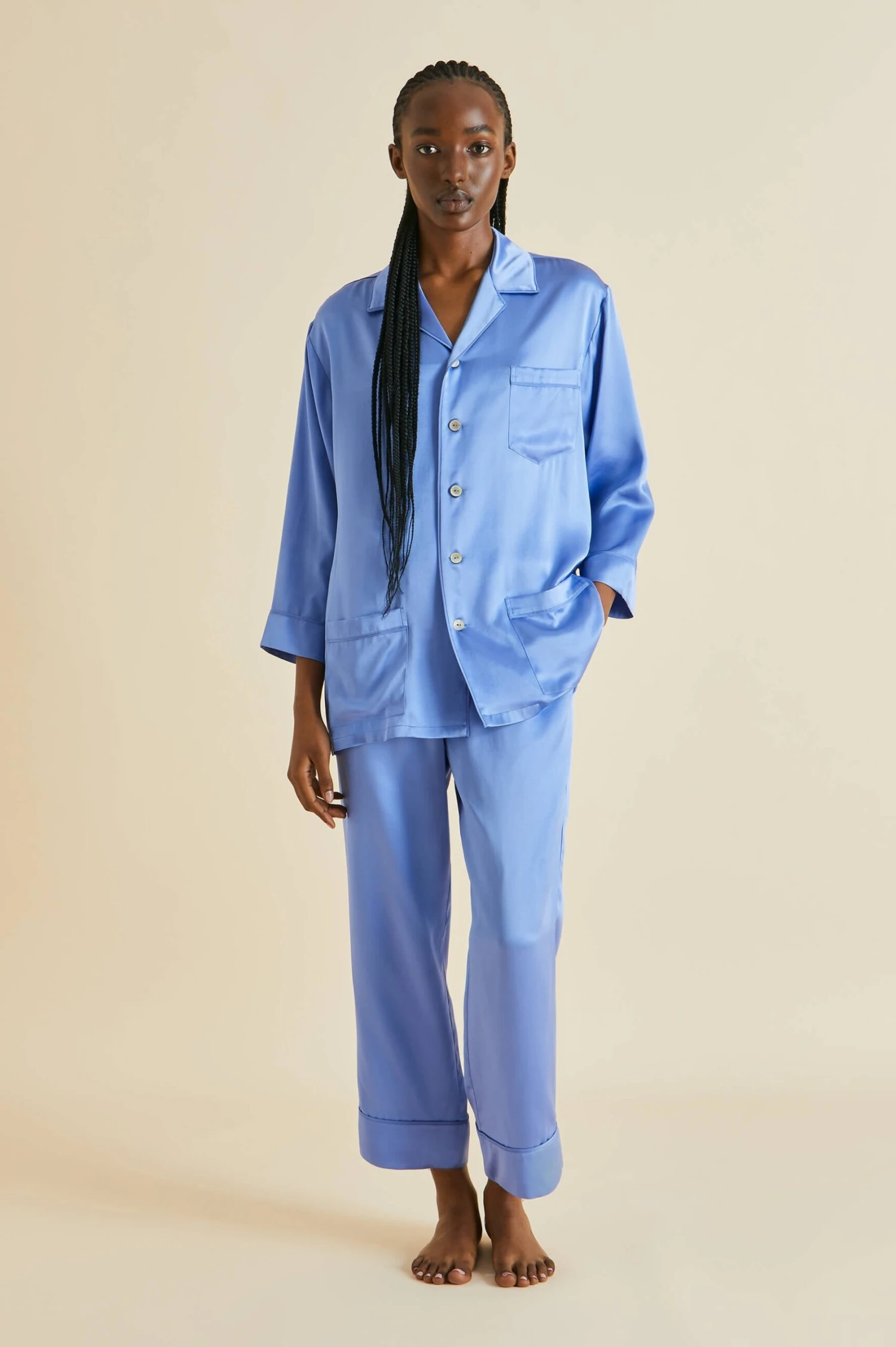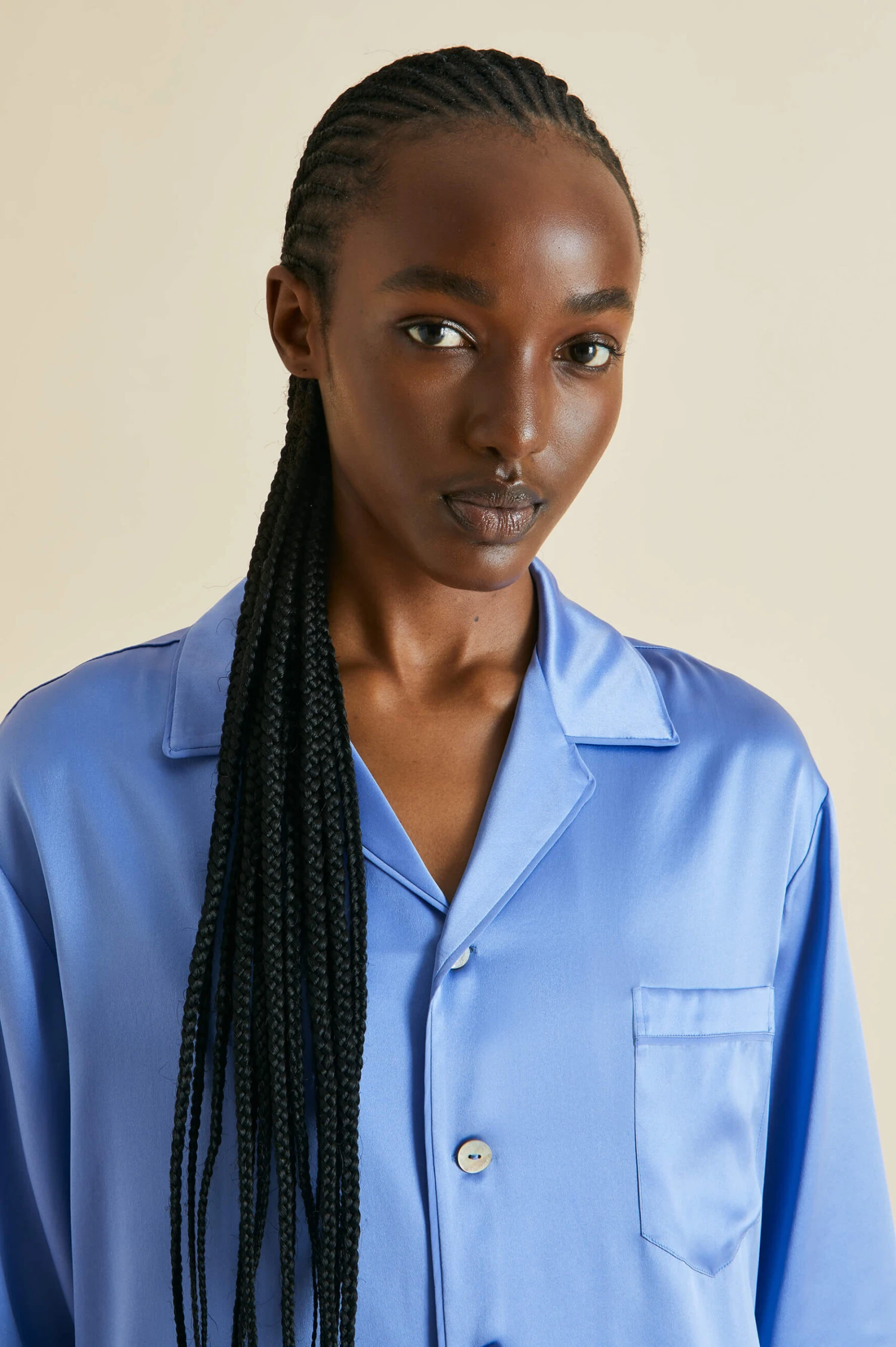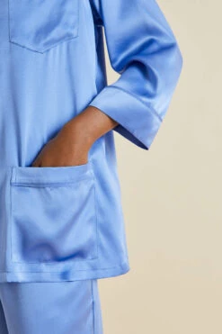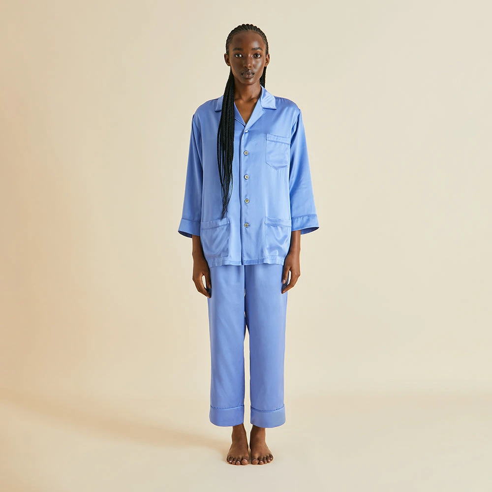 The doyenne of decadence, our bluebell silk Fifi pajama was made for lounging around on sultry days. Part of The Azure Collection inspired by the glamour of the French Riviera, in our relaxed fit, 19-momme silk you’ll be dreaming of blue skies and endless sun.