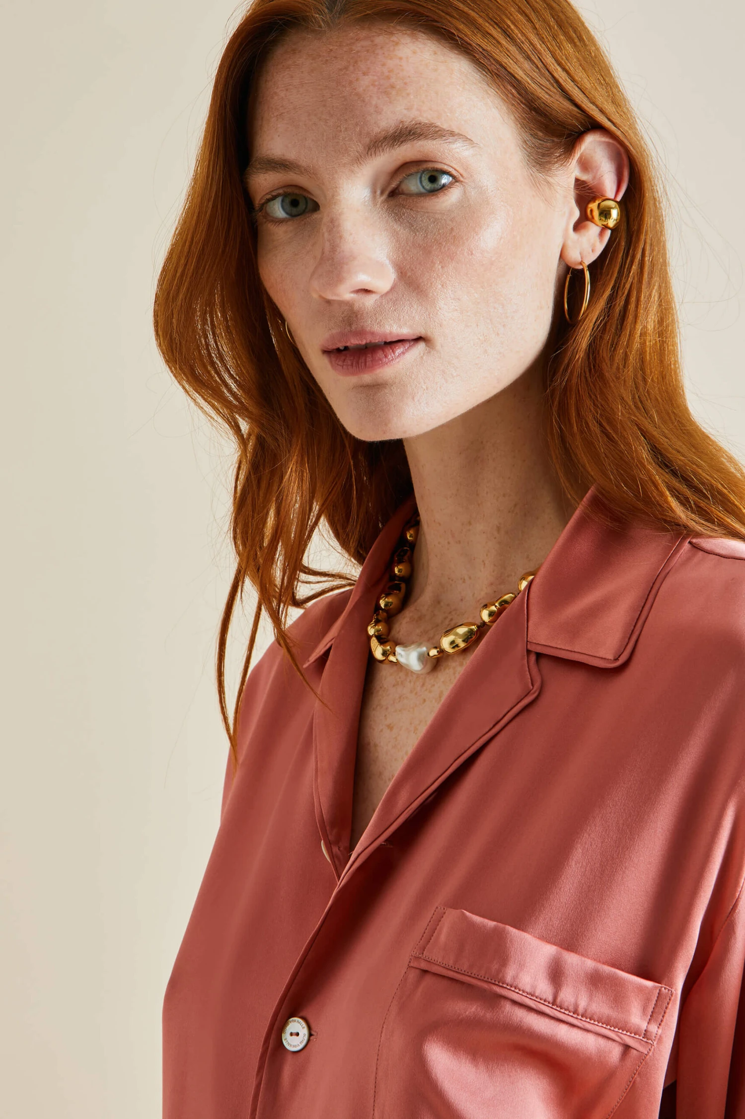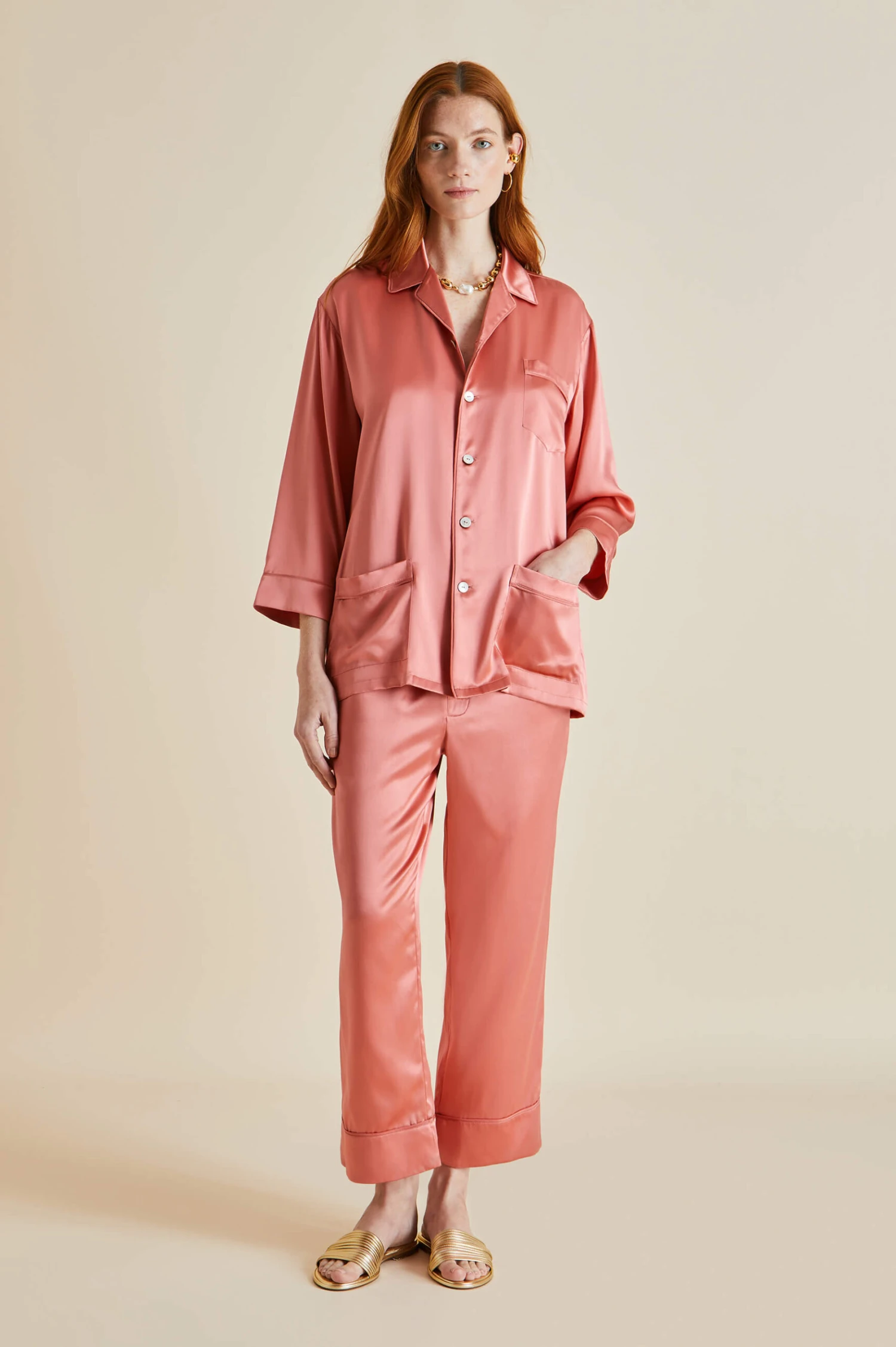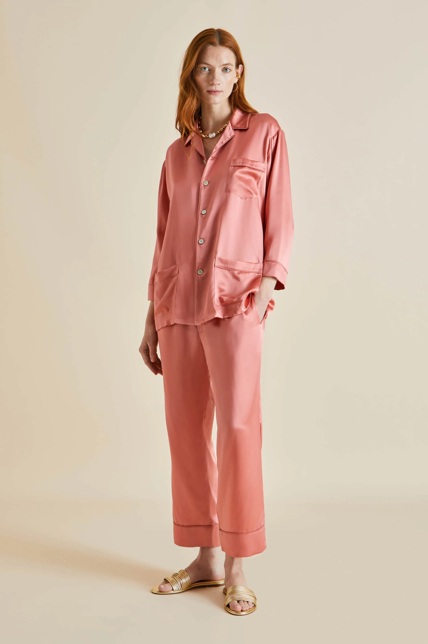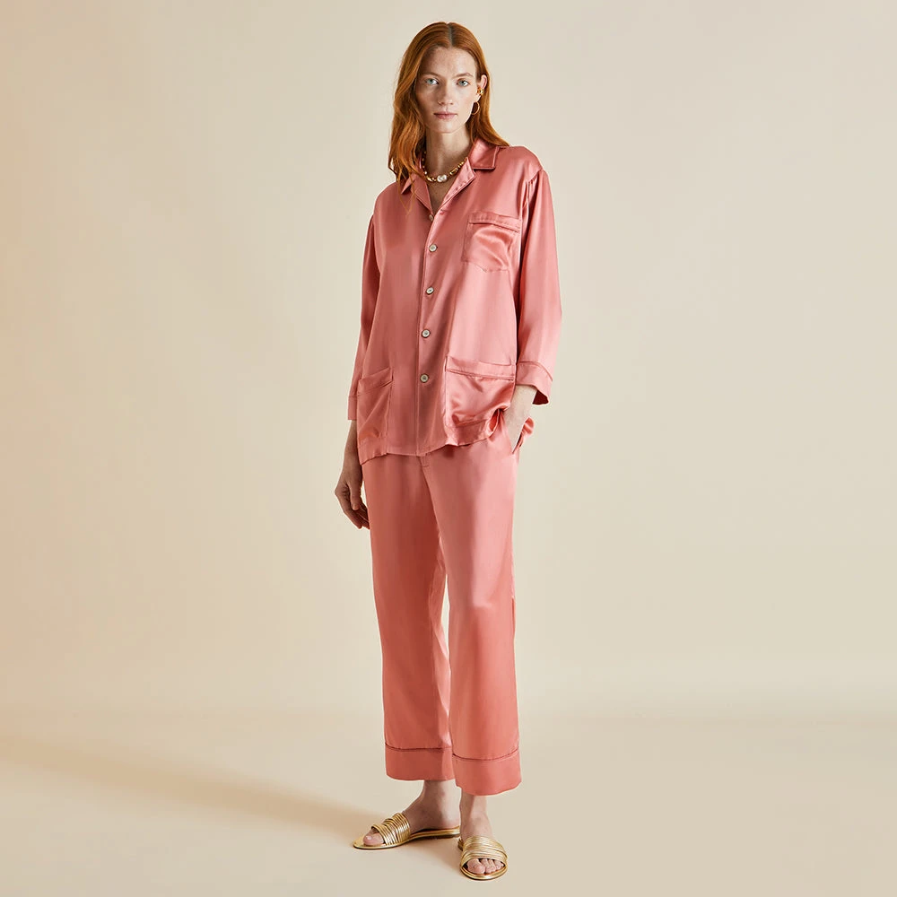 This season the Fifi silk pajama is seeking fresh horizons in vibrant 19-momme rose pink silk. Part of the Spring Summer collection inspired by long, languorous journeys and the lost glamour of travel, our classic silhouette is ready to wake up somewhere new. This style and fit is suitable for all genders, and all kinds of ardent adventurers.