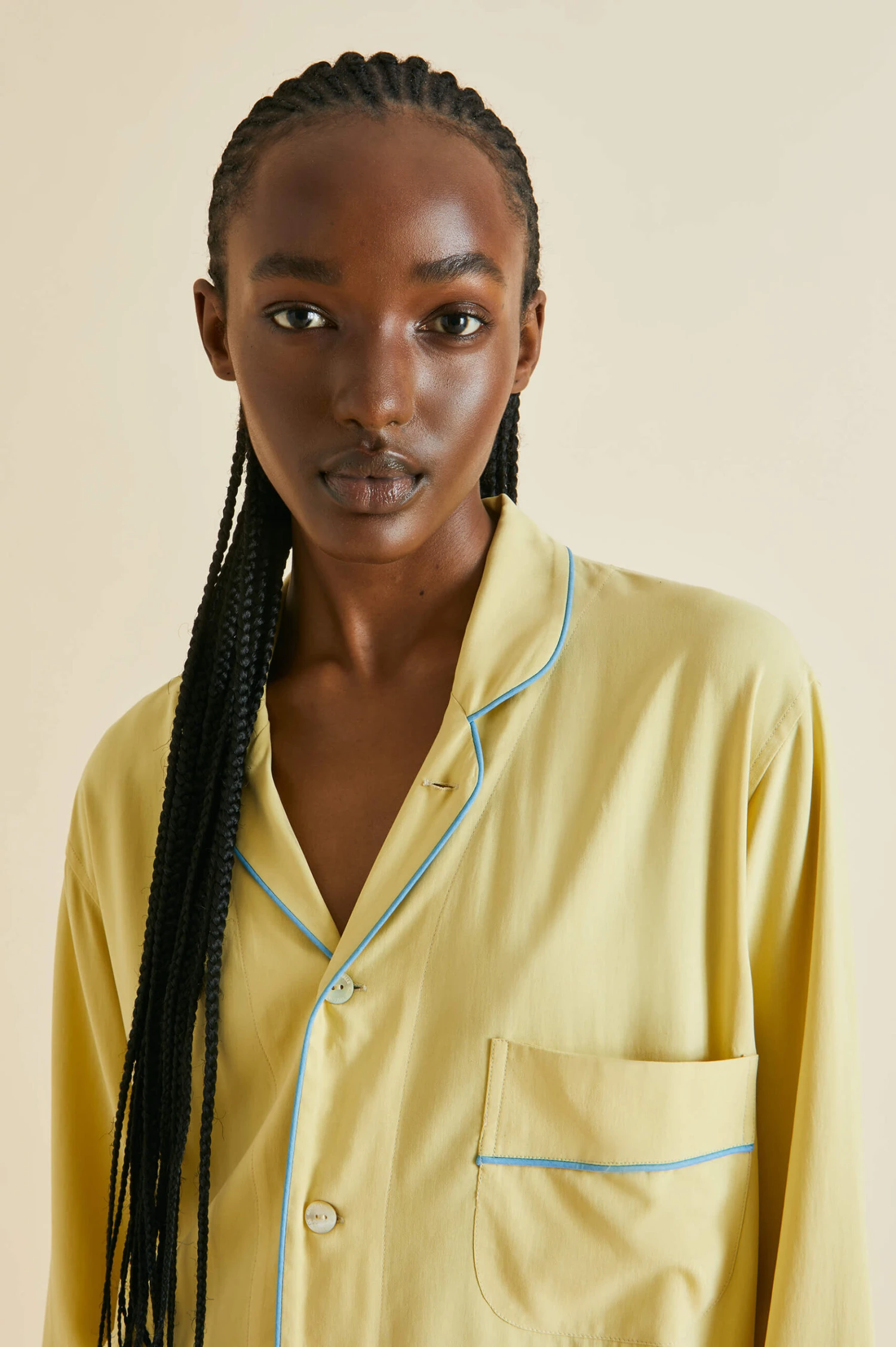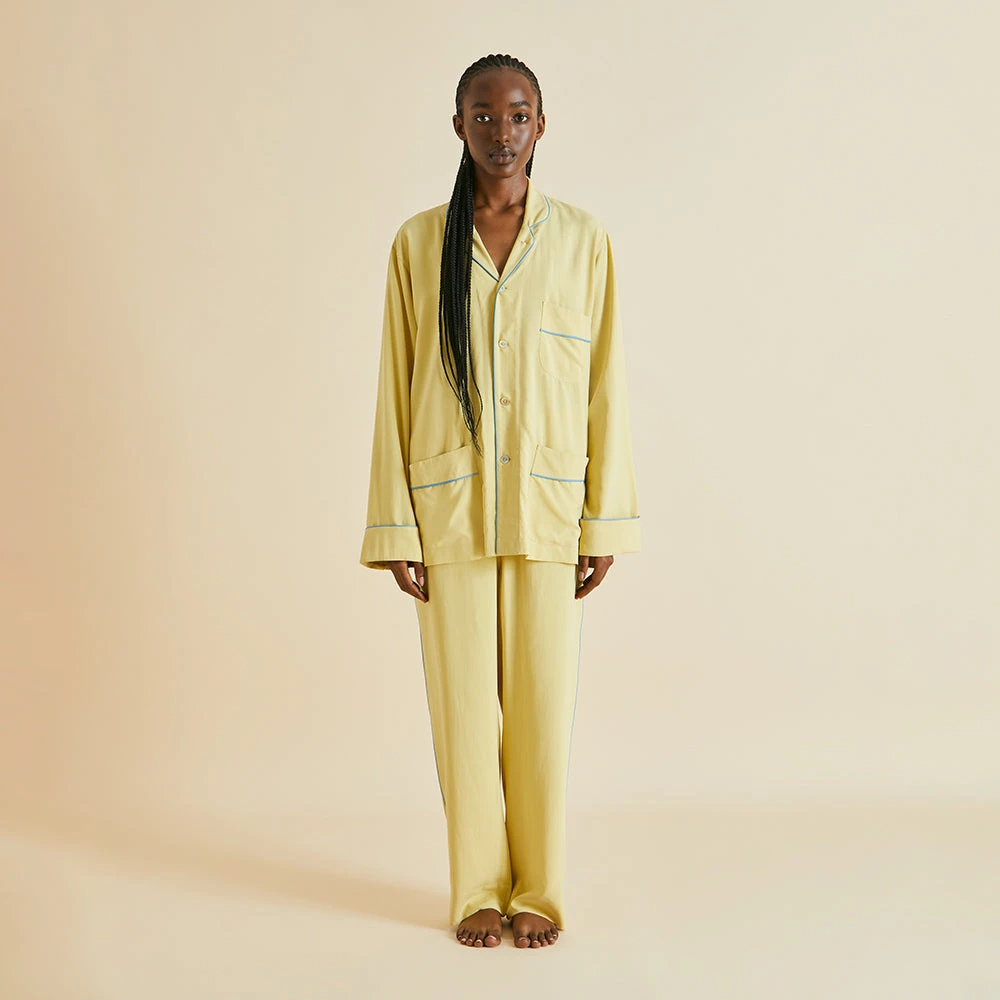 Wake up and embrace the sunshine in our buttercup yellow Laurent pajamas. The first (and last) word in elegance, this genderless design is inspired by the French Riviera in the 1920s and 30s: a hotbed of creativity and leisurely glamour. Wear this 22-momme spun silk set while enjoying an espresso on the terrace before your morning swim.