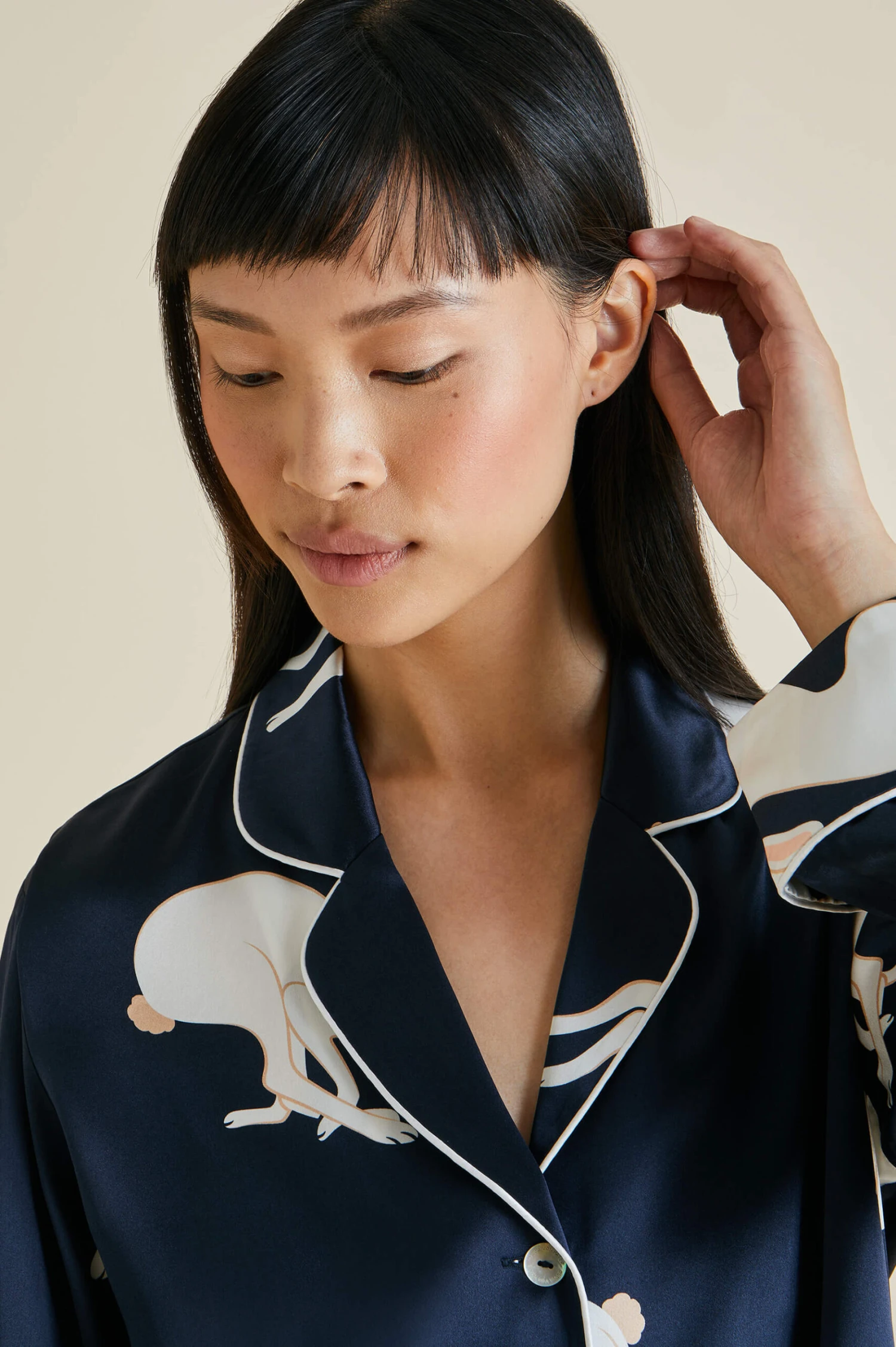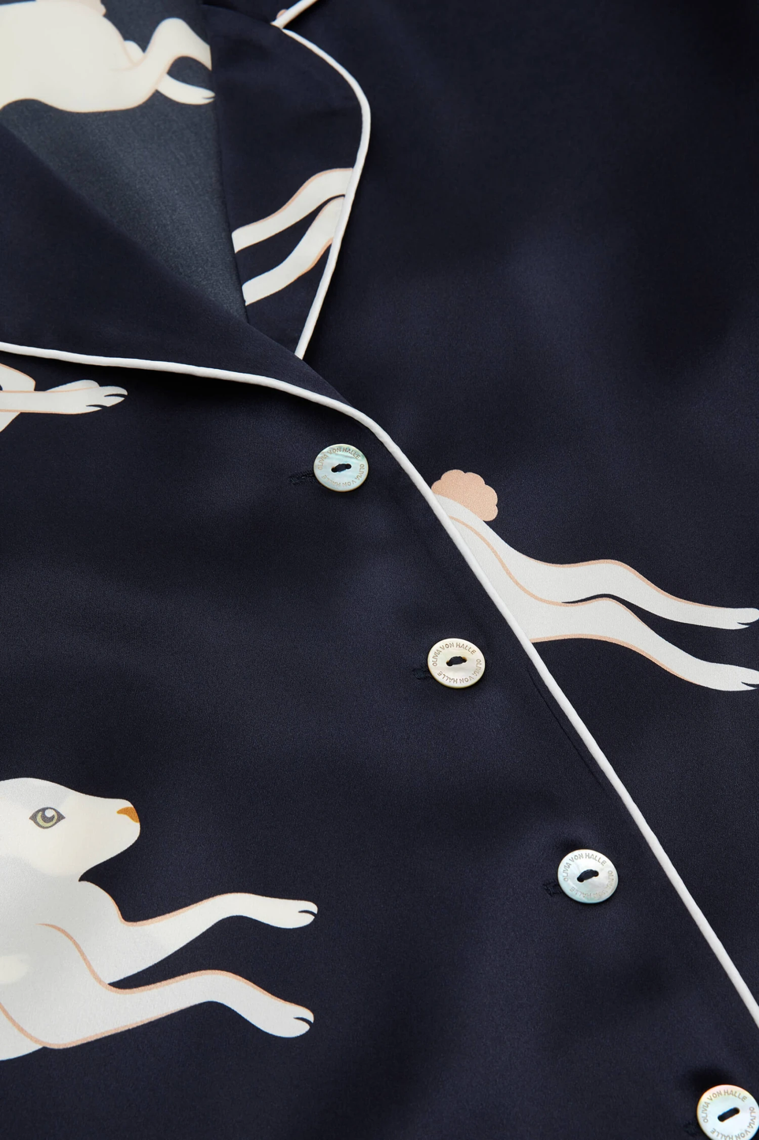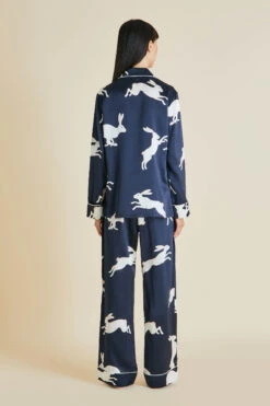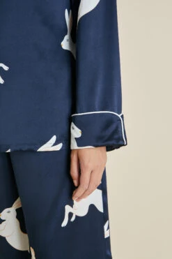As the purveyor of the world’s most sought-after pajamas, Olivia von Halle has struck upon a magical mélange of world-leading luxury and tongue-in cheek charm. Such is the underlying essence of our Lila Blessing pajama, which sees a playful bunny print paired against a 19-momme silk canvas.