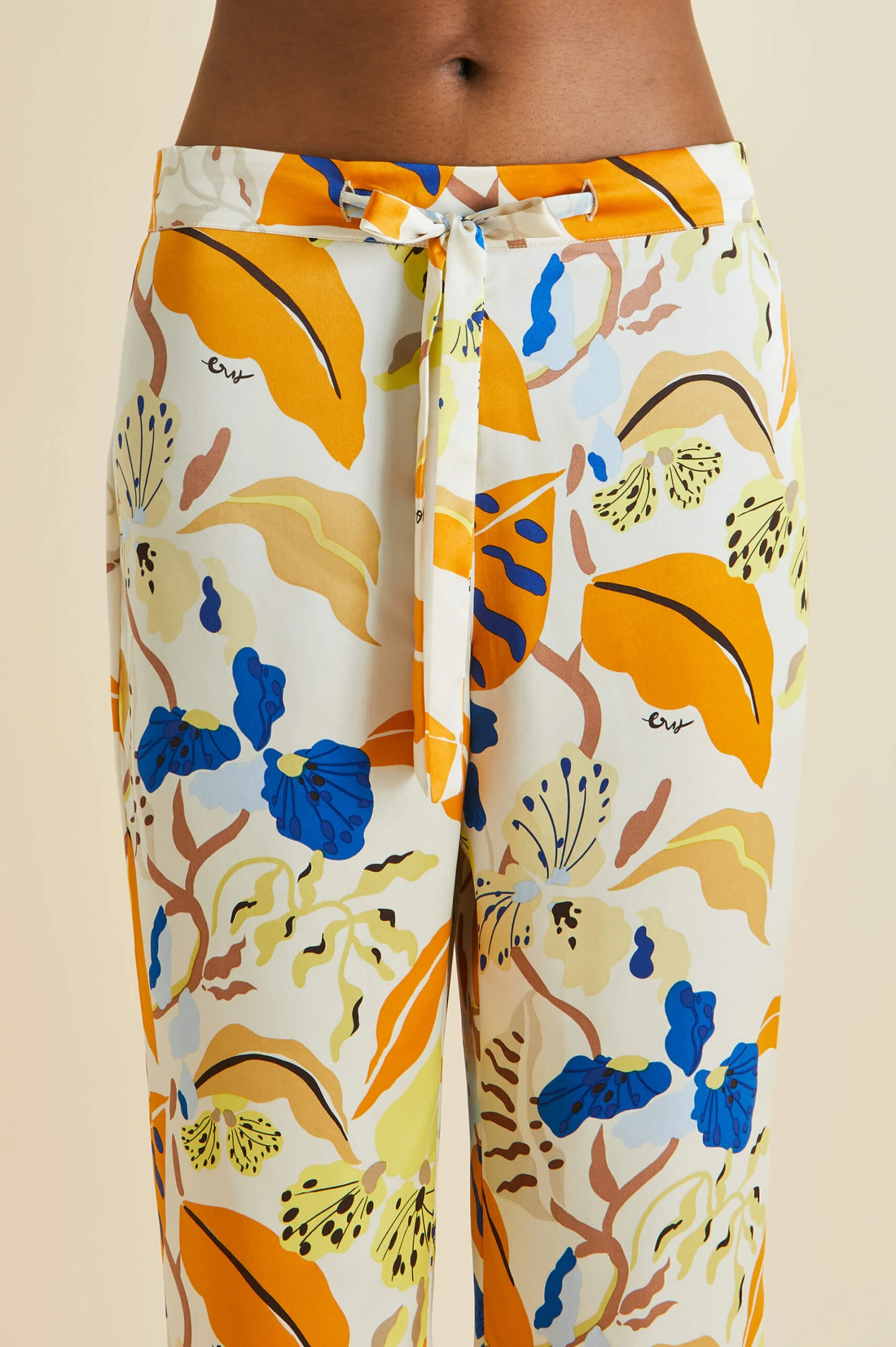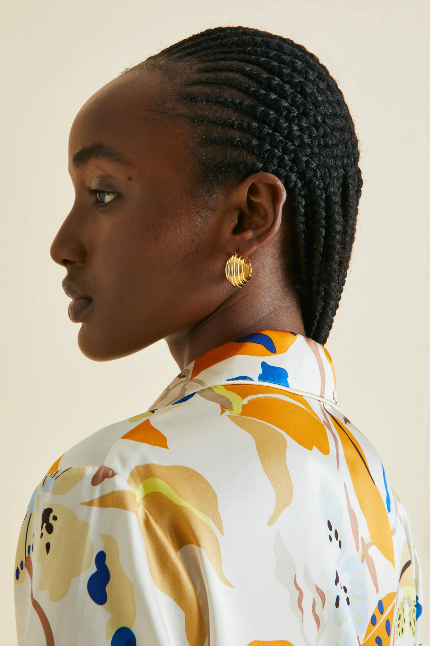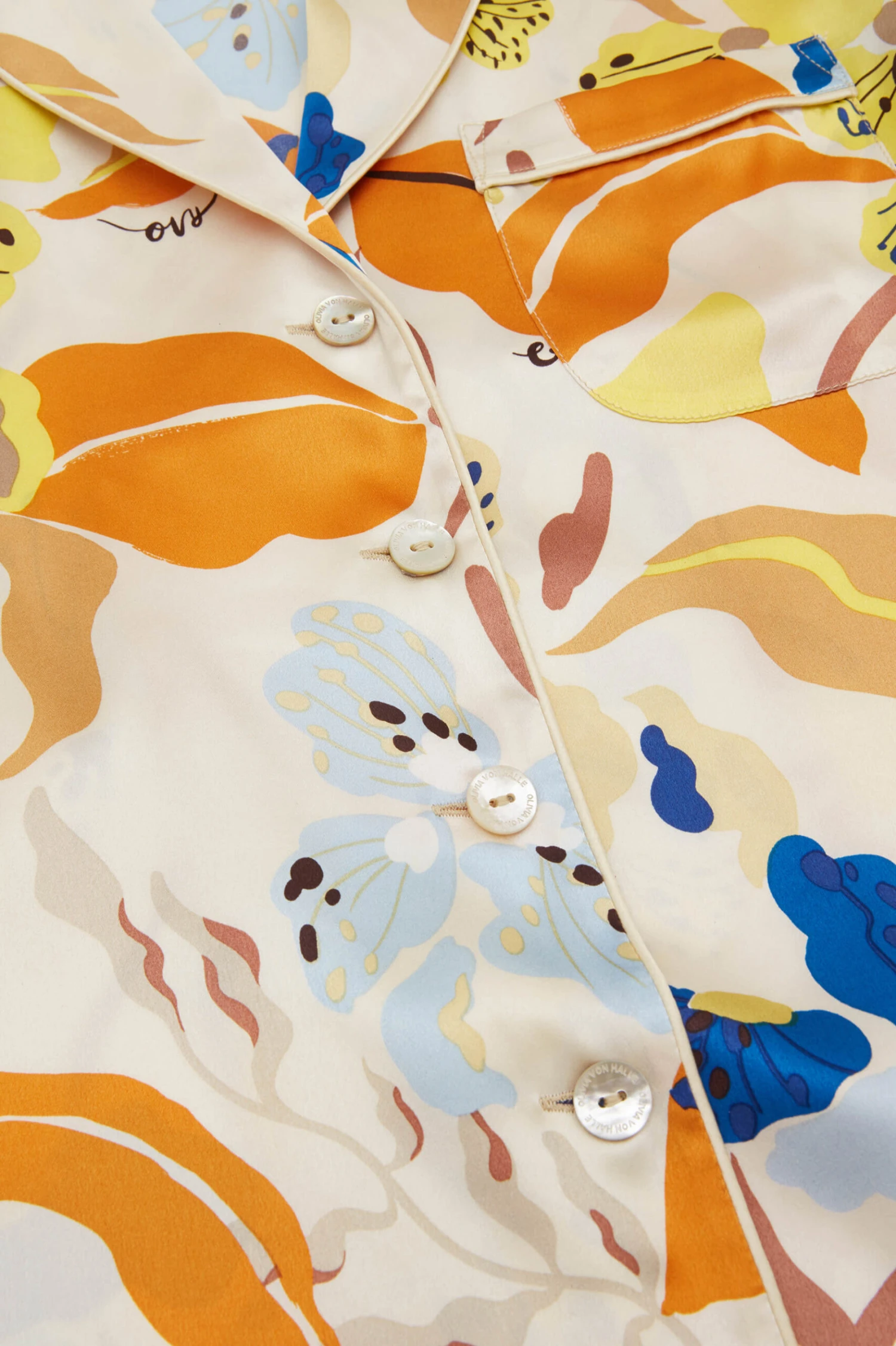 Inspired by the bold colors and visionary lines of artists including Sonia Delaunay, Jean Cocteau and Pablo Picasso, this season our signature Lila pajama comes clad in abstracted florals. With her classic piped silk trims, she’s as striking as a painting.