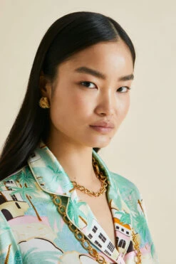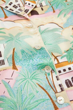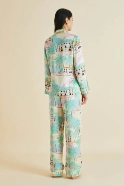 From the pink-fronted Villa Ephrussi to Cannes’ palm-lined La Croisette, the French Riviera is defined by its striking buildings. Paying homage to the 1920s glamour of the South of France, lounge in luxury in this screen-printed Lila pajama set – infused with the heady sights and colors of the Côte d’Azur.