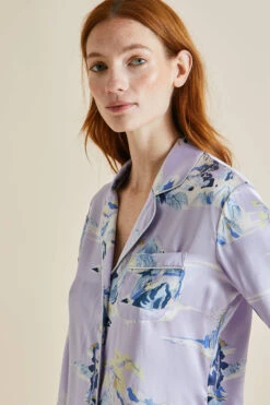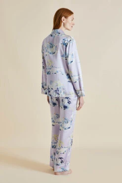Part of our Spring Summer collection devoted to the bygone glamour of the Eastern & Oriental Express as it winds through Singapore, Malaysia and Thailand, this season the Lila silk pajama reveals herself as a seasoned traveller. She dreams of snow-capped peaks and lilac skies, all the while swathed in airy 19-momme silk.