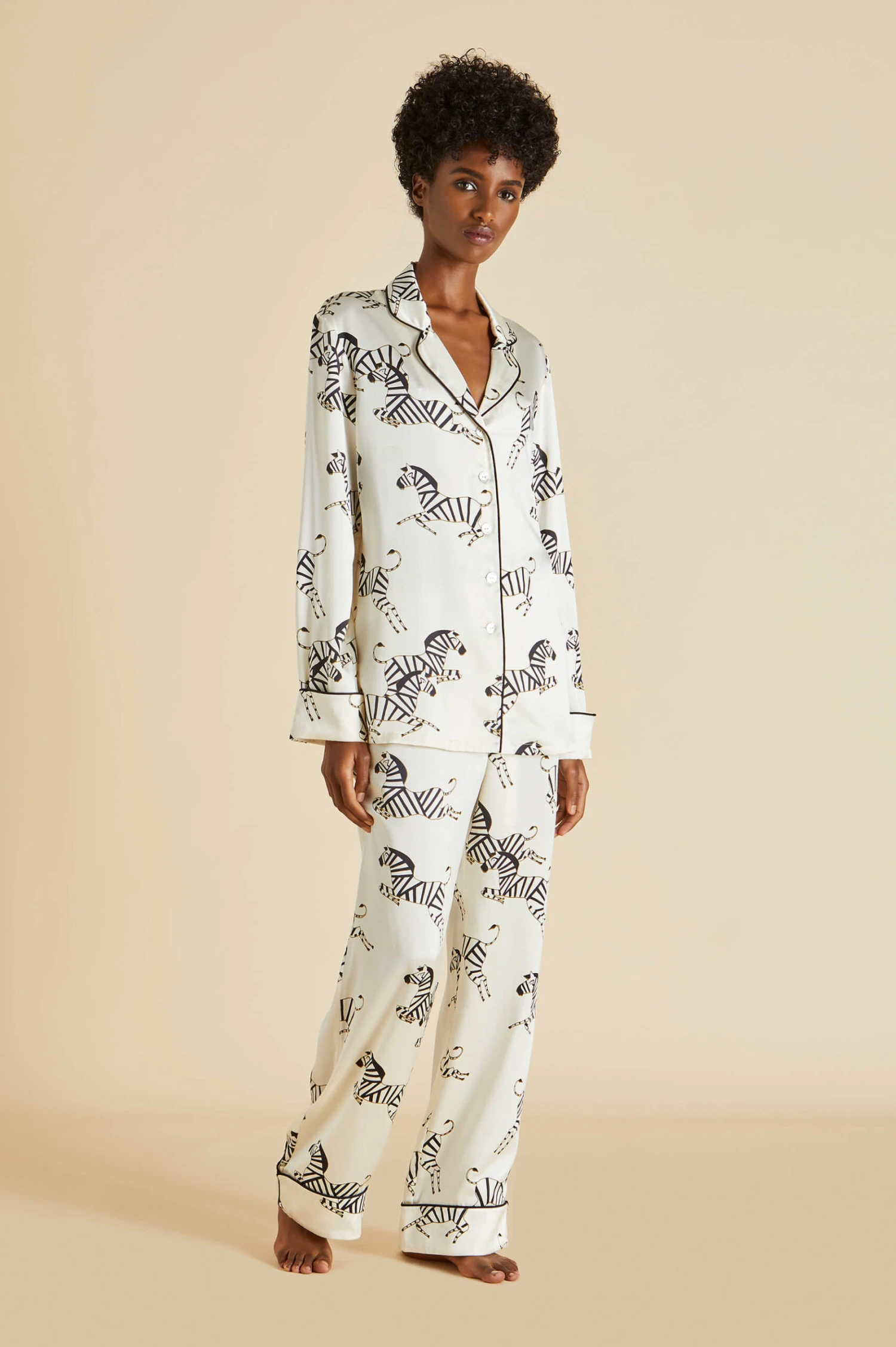 Our bestselling print is back. For a wardrobe of decadent silk pajama sets, this is the foundation. The Lila Zebedee silk pajama set, with its riots of zebras prancing across the finest silk pajama you’ll ever own, style your sleepwear with the one silk pajama set to rule them all.
