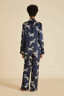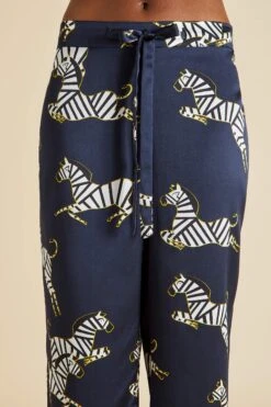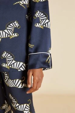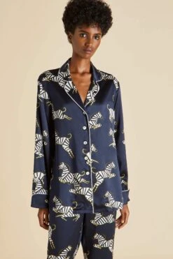 - Luxury Navy Blue zebra printed silk pajama set