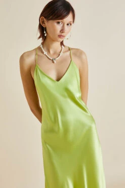 The Mossy silk slip dress knows how to make an entrance. No quiet slinking into a party for her – she wants to take centre-stage. Inspired by her namesake Kate Moss, this delicate A-line green silk slip can be dressed up, dressed down, and whirled around a dancefloor (or sprawled across a velvet chaise longue) with ease.