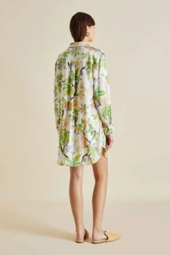 Our relaxed Poppy silk nightshirt is reborn this season as a bird of paradise. Vividly hued and ready to take flight, she’s paying homage to the extravagant beauty of nature in screen-printed scenes of flora, fauna and feathered beings. Slip into our soft-as-air 19-momme silk and you’ll soon feel like soaring.