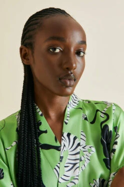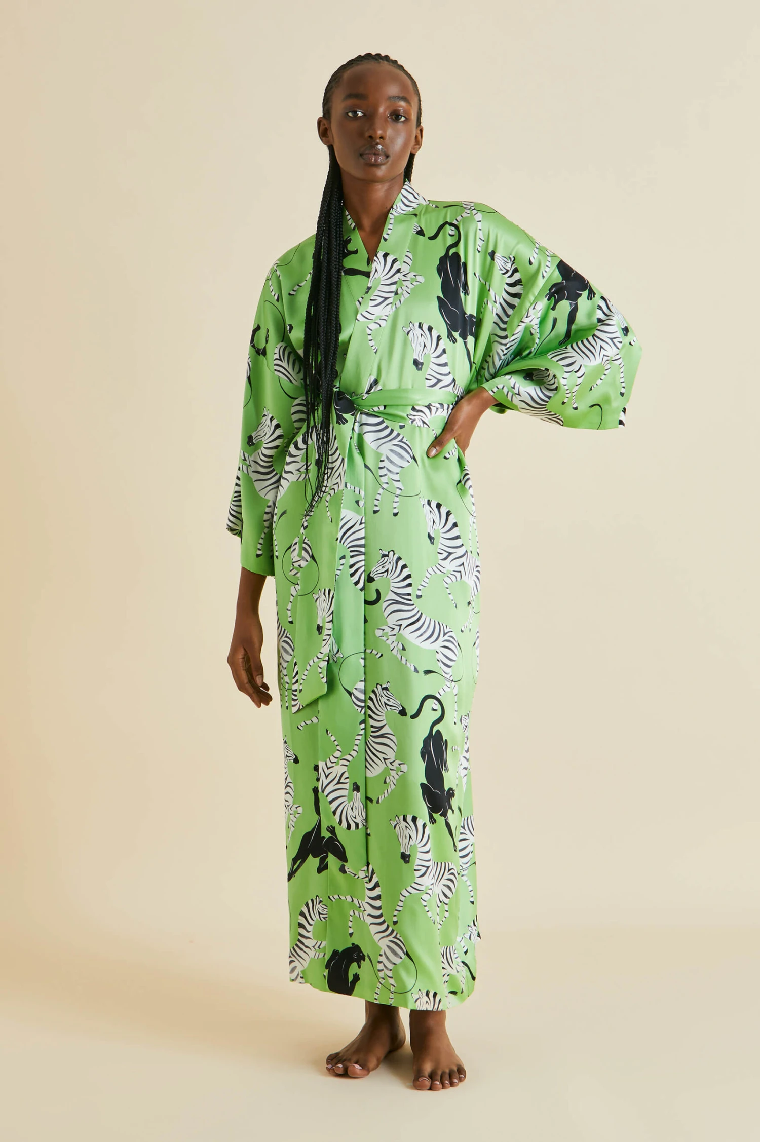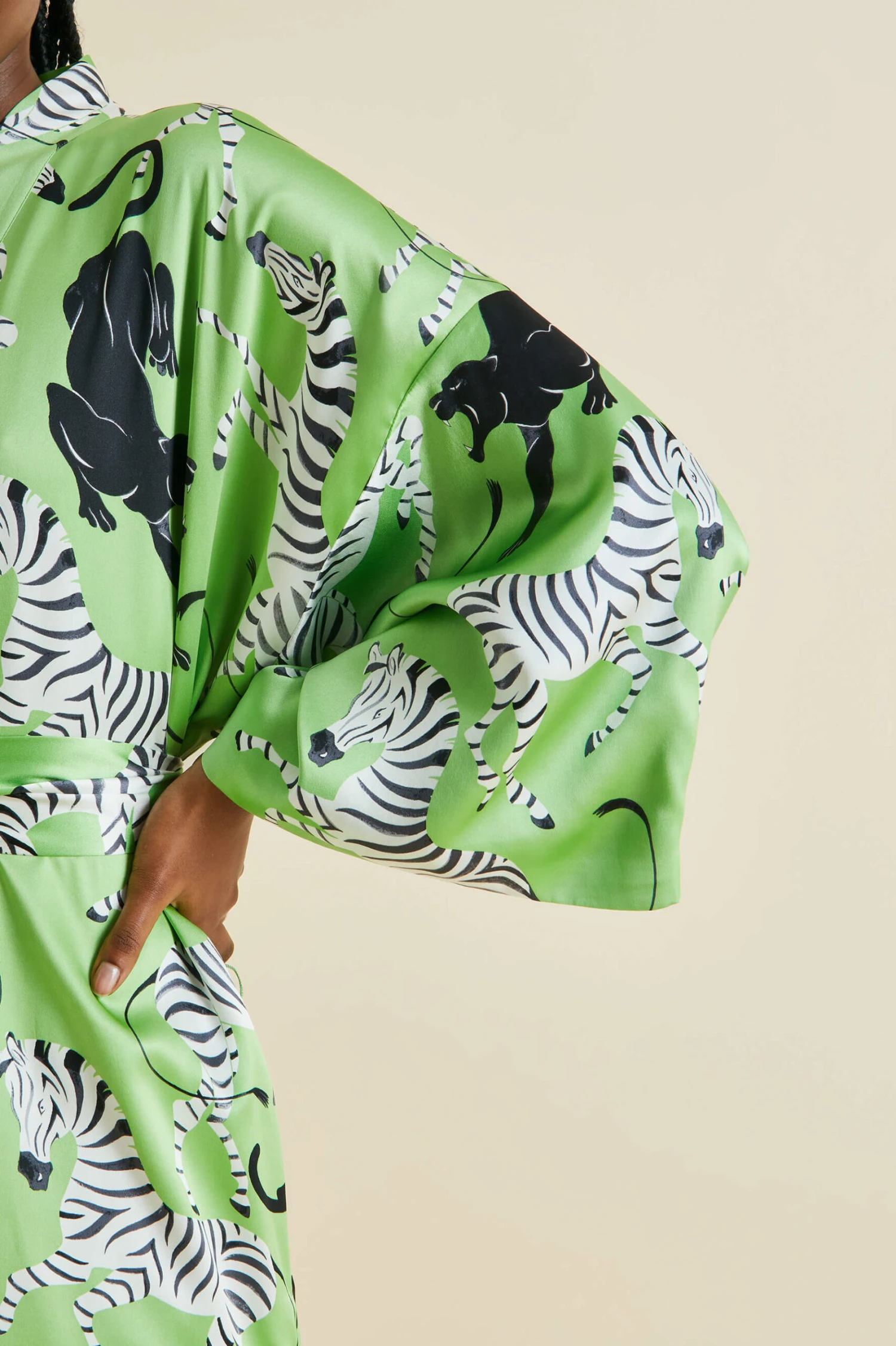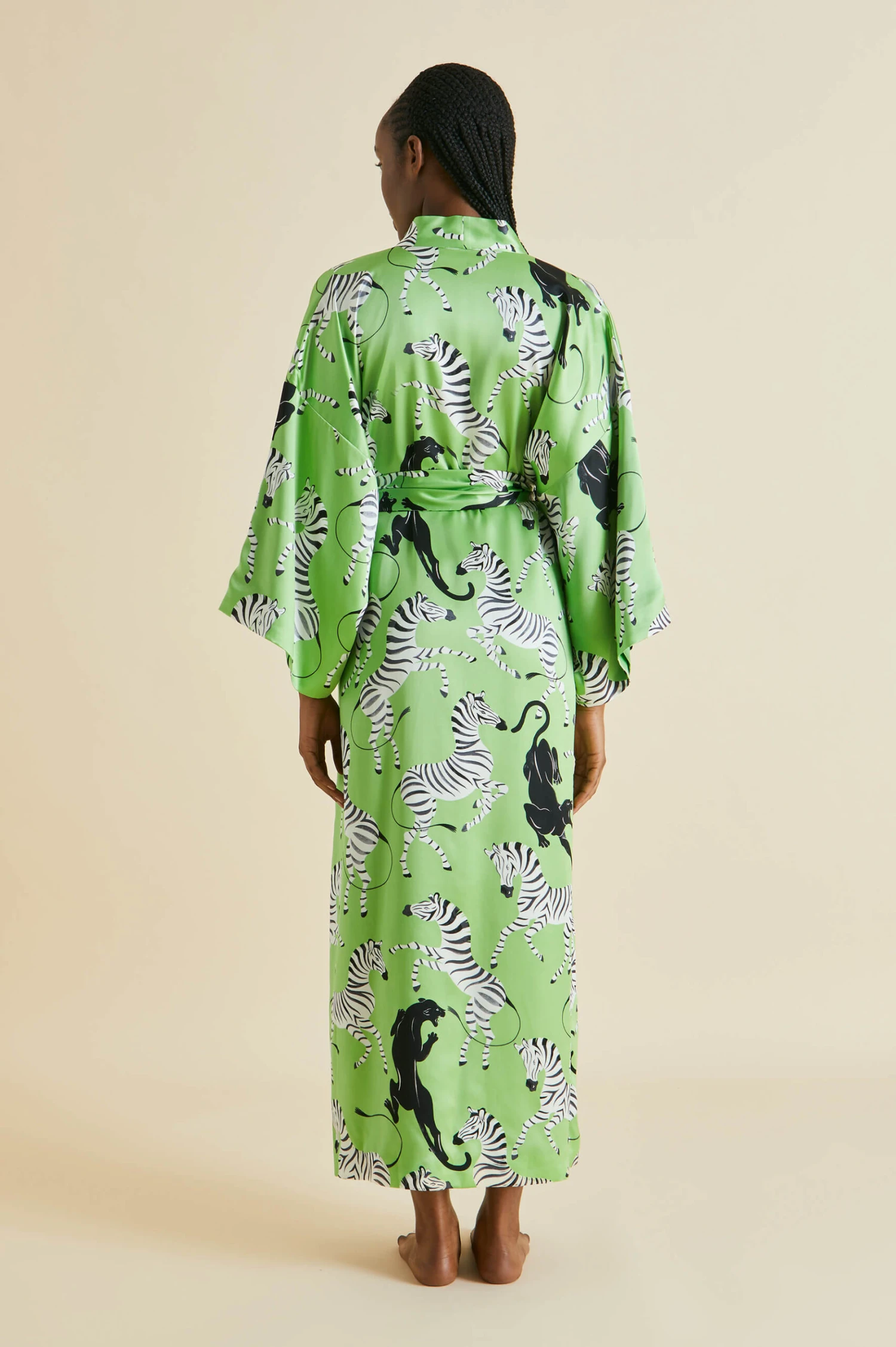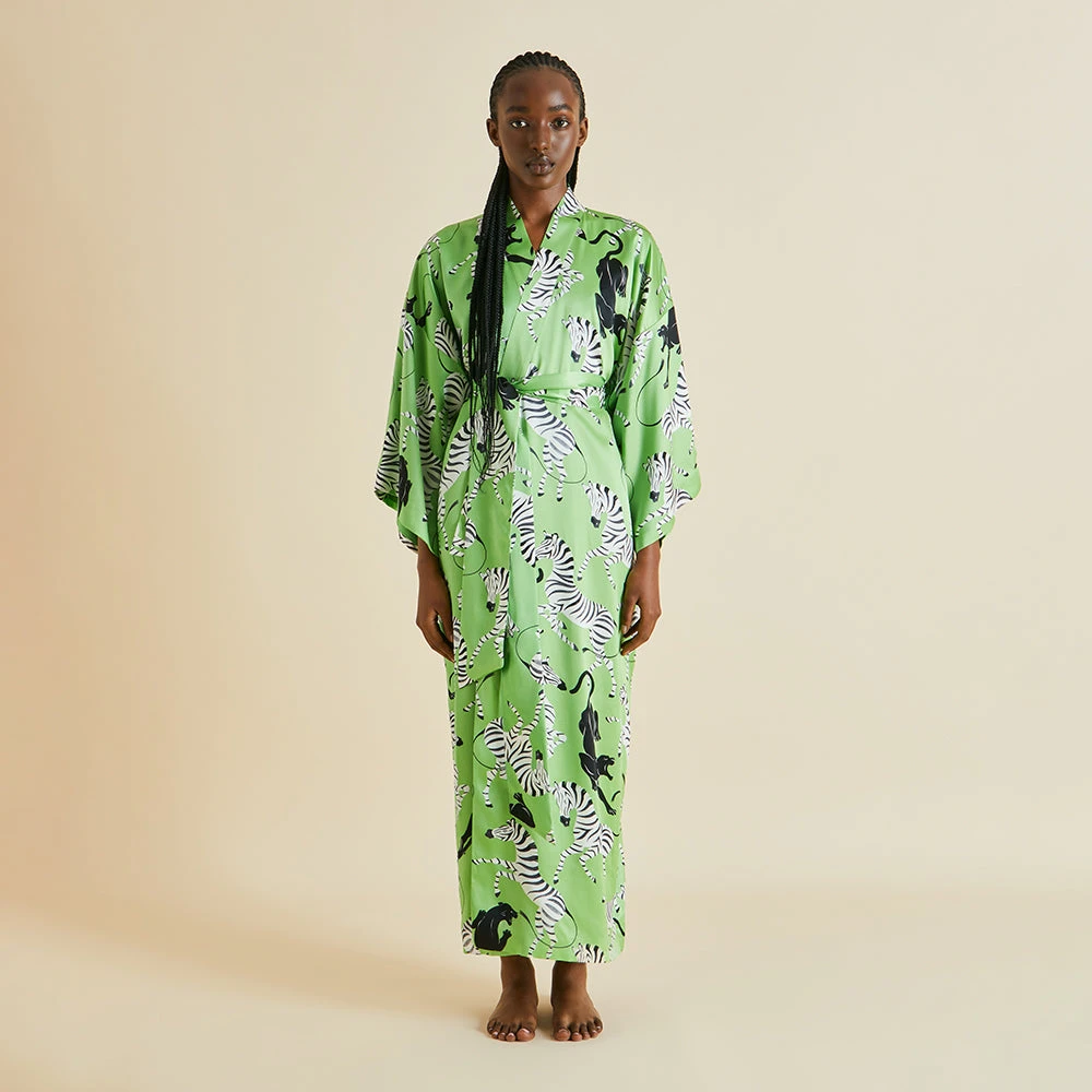 This season, Olivia von Halle combines a surrealist artistic sensibility with the seductive promise of all-out leisure. Inspired by the bohemian jet set who alighted in the French Riviera in the 1920s and 30s, our vivacious prints pay homage to the artists and writers who made it their home. Find your own creative spur in our majestic Queenie robe – designed in London, screen-printed on our signature 19-momme silk.