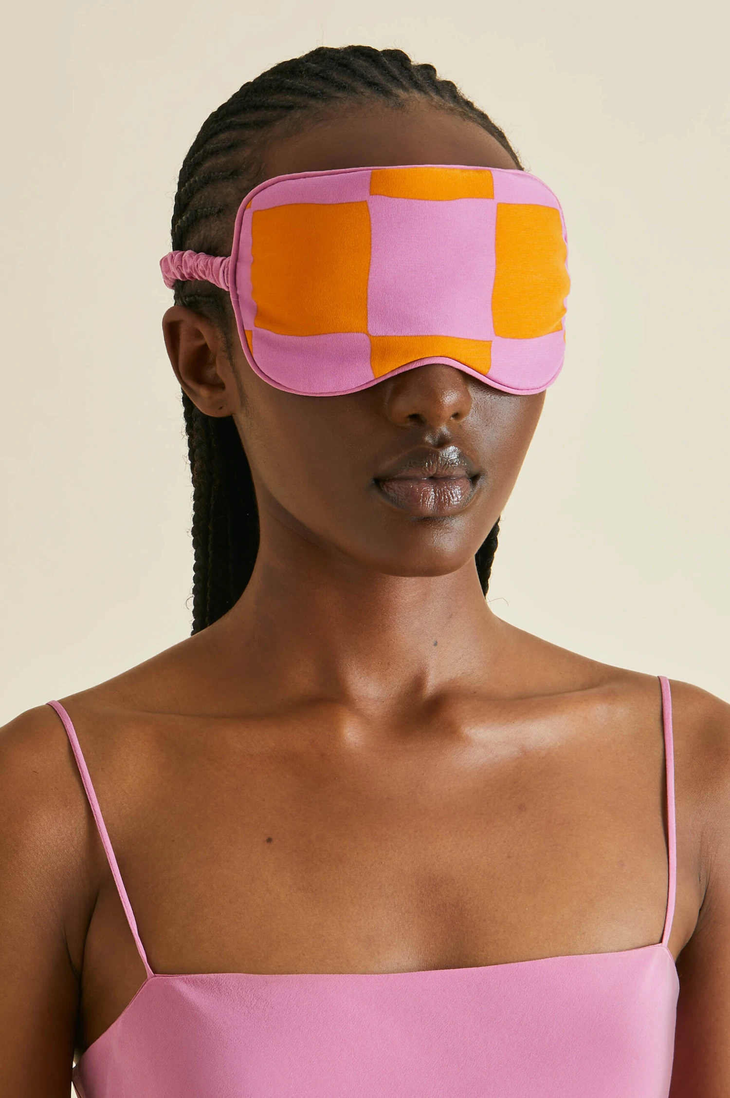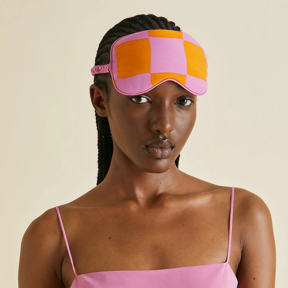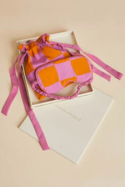 No suitcase is complete without an Olivia von Halle eye mask, complete with matching drawstring bag. Pack our foxglove and tangerine gingham print 16-momme silk crepe de Chine, and you’ll sleep in sumptuous peace.
