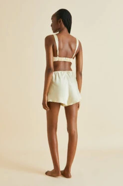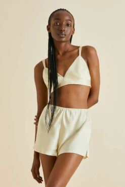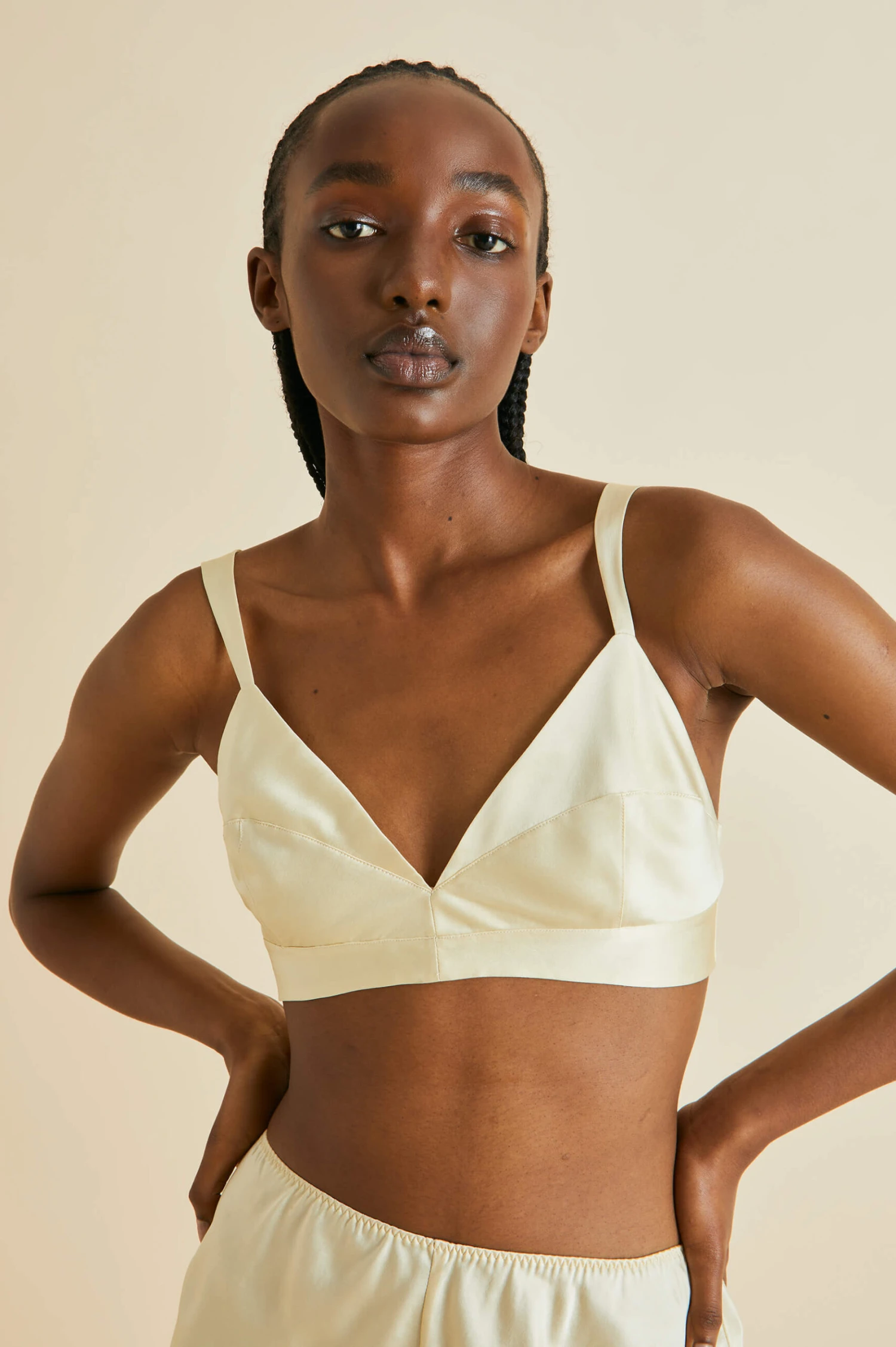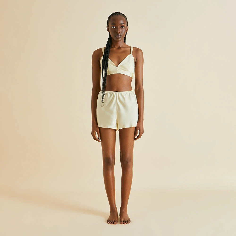 Our cult-favourite Zsa Zsa bralette set returns this season, still golden from her holidays. Part of The Azure Collection inspired by the glamour and bohemianism of the 1920s Côte d’Azur, her luxurious 19-momme silk and vintage-inspired silhouette suggest elegance at its most nonchalant.